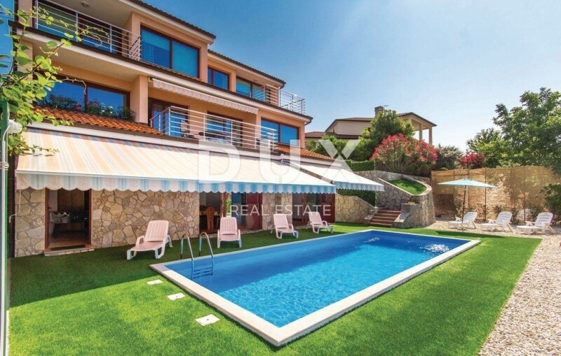 This spacious three storey house is located in the suburb of Rijeka. The proximity of the highway and the local roads provides quick access to Opatija, Crikvenica and the island of Krk. In the basement there is a kitchen and a living room that are a great asset for summer days while you spend time at the pool or barbecue. With outside stairs you can reach the ground floor of the house where there is a tavern, heating room and a one bedroom apartment with a living room. On the first and second floor there is a comfortable duplex apartment. It consists of a kitchen, dining room, a very comfortable living room with access to a large terrace with panoramic view, 5 bedrooms (1 master bedroom with bathroom) and a guest toilet. The house is located on a plot of 1500 m², the garden is well cultivated and there is a swimming pool and barbecue. The view from the house is unforgettable. Patrik Hrštić Agent s licencom E- www.dux-opatija.com RIJEKA - house with pool and panoramic sea view.