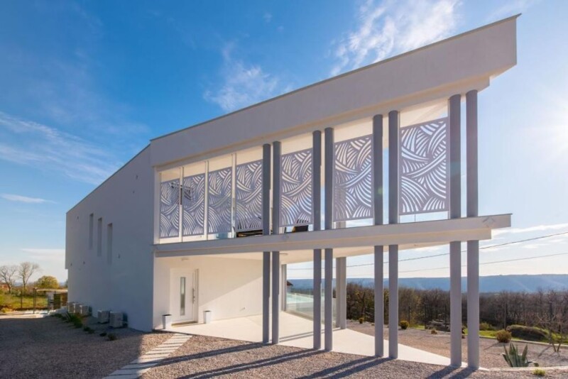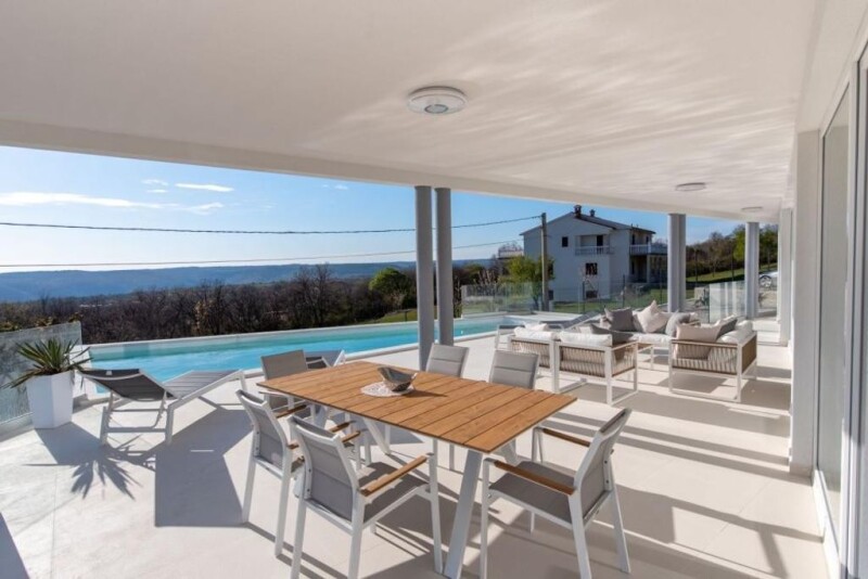 Highly original luxury villa with swimming pool with a beautiful view of the sea in Rabac-Labin area! Situated in proximity to the charming town of Labin, with a sweeping vista of the sea, stands this magnificent luxury villa boasting modern architectural elegance. Spanning a total area of 223 square meters, nestled on a grand land plot encompassing 1545 square meters, this property exudes opulence and sophistication. The ground floor welcomes with an open-concept design, featuring a kitchen seamlessly merging with a dining area and a spacious living room, accompanied by a guest toilet and a storage room. Stepping outside, a terrace beckons, overlooking a shimmering swimming pool and offering captivating views of the surrounding landscape. Ascend the internal stairs to the first floor, where three bedrooms await, each accompanied by its own ensuite bathroom and terrace. From these vantage points, one can savor the breathtaking panorama of nature and the sea beyond. Additionally, a built-in chimney provides the option for heating with solid fuels. The listed price encompasses the fully furnished and equipped property. Enclosed within a fenced and meticulously landscaped garden, this villa epitomizes luxury living. Just a short drive from the sea and a mere ten minutes from the city center, this property presents an exceptional investment opportunity for those seeking lucrative tourist rentals or a sumptuous family residence. Ref: RE-AB-28779Overall additional expenses borne by the Buyer of real estate in Croatia are around 7% of property cost in total, which includes: property transfer tax (3% of property value), agency/brokerage commission (3%+VAT on commission), advocate fee (cca 1%), notary fee, court registration fee and official certified translation expenses. Agency/brokerage agreement is signed prior to visiting properties.