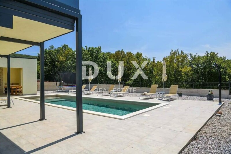 ISTRIA, RABAC - Villa with pool and panoramic views Rabac, a charming and picturesque town which is the most important tourist center on the east coast of the Istrian peninsula, about 40 kilometers from Pula and only 5 kilometers from Labin. Leaning on the Kvarner Bay, at the foot of the hills that protect the place and maintain a pleasant Mediterranean climate, Rabac is rightly known as the pearl of Kvarner. Not far from Rabac in a small village by the sea, a villa with a swimming pool and panoramic views is for sale. Modern villa of 190 m2 extends through the ground floor and first floor. The ground floor has a living room, kitchen with dining area, toilet and a spacious bedroom with private bathroom and sauna. Upstairs are three bedrooms with private bathrooms and access to the terrace with panoramic views of the surrounding hills and greenery. This comfortable prefabricated villa is modernly furnished and fully equipped and is sold as such. Each room is air conditioned and equipped with solar panels. On the spacious fenced yard there is a large covered summer kitchen and a swimming pool of 42 m2 with sun deck. Ideal property for family life, rest and relaxation or as an investment for rent for tourist purposes. OPPORTUNITY !!! Dear clients, the agency commission is charged in accordance with the General Terms and Conditions www.dux-nekretnine.hr/opci-uvjeti-poslovanja Iva Zajc Agent s licencom E- www.dux-istra.com ISTRIA, RABAC - Villa with pool and panoramic views.