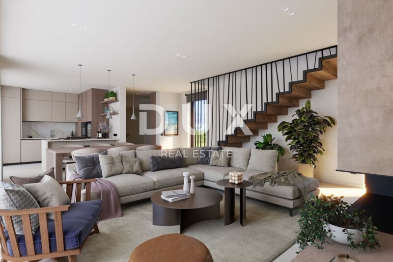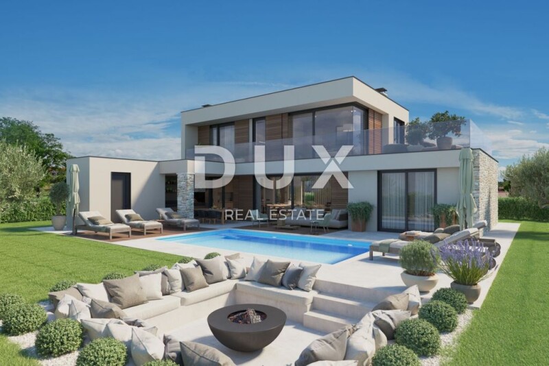 ISTRIA, POREČ (surroundings) - Modern villa under construction with a view of the sea The coast of Poreč is 37 km long, where there are 21 beaches with the Blue Flag - a symbol of clean sea. The most prominent are the Lotosi beach, the city swimming pool and Pješčana uvala, which are characterized by clear sea and a rich offer of entertainment and recreational content. For boat owners, the coast of Poreč offers an inexhaustible source of research, while they can anchor their vessel in one of the well-equipped Poreč marinas. For those who want to have fun, the terraces of the city are filled with various activities almost every day in the summer. You can also visit fishing festivals, exhibitions and fairs of indigenous products. As part of the gastronomic offer, traditional Istrian cuisine accompanied by excellent wines and local olive oil is essential. This luxurious villa with a sea view is being built just 10 minutes' drive from Poreč. The villa is spread over 296 m2 of land, and its net area is 204 m2. On the ground floor there is a covered entrance, an entrance hall, a toilet, a kitchen, a living room, a bedroom with an attached bathroom, and in the extension a covered terrace with a summer kitchen and a storage room. On the first floor there is an entrance hall, three bedrooms, bathrooms, storage rooms and two terraces, one of which is covered. The construction will be made with thermoblock, with the necessary thermal insulation, the final ETICS system, a small part of the final stone cladding, according to the calculation of thermal stability. The exterior carpentry of the building will be made of PVC carpentry, glazing with double insulating glass and filled with gas, with sun protection with blinds. The house will have underfloor heating and air conditioning. There are two parking spaces and a 28m2 swimming pool in the garden. Due to the proximity of all amenities, this property is ideal for renting in tourism but also for family life. Dear clients, the agency commission is charged in accordance with the General Business Conditions: www.dux-nekretnine.hr/opci-uvjeti-poslovanja DUX Pula E- www.dux-istra.com ISTRIA, POREČ (surroundings) - Modern villa under construction with sea view.
