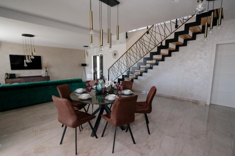 A new luxury house, fully furnished, is located just 3 kilometers from the center of Pula. With an area of 220 m², the house is spread over two floors. It consists of 3 bedrooms, 3 bathrooms and an open-space living room, dining room and kitchen on the ground floor. The house boasts an 8x4 meter swimming pool, equipped with the best and highest quality equipment, including a massage waterfall, heating and other luxurious features. In addition, there is a 5-person jacuzzi on the terrace, perfect for relaxing in the privacy of your home. The property is equipped with PVC windows with triple glazing, aluminum electric shutters and mosquito nets, which provides additional comfort and energy efficiency. The house is equipped with underfloor heating and cooling, with air conditioning in all rooms, while a Viessmann heat pump system ensures optimal energy efficiency throughout the property. The 500 m² garden contains artificial grass, three olive trees and two palm trees, which creates a special atmosphere and enjoyment of the outdoors. This house represents a combination of luxury, modern design and comfort, perfect for those who want to enjoy privacy and comfort, while at the same time being close to all the amenities and beauties of Pula. For more information and a tour of the property, feel free to contact us! M. +385 99 203 6999 M. +385 91 732 5577.