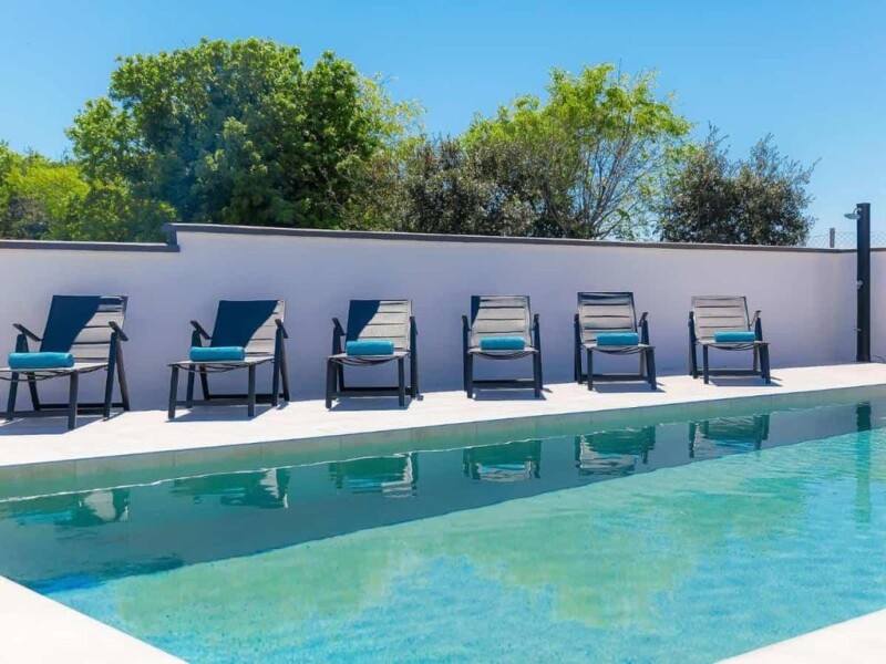 Location: Pula Built: 2019 Pula center: 2 km Airport distance: 10 km Inside space: 145 m2 Plot size: 597 m2 Bedrooms: 3 Bathrooms: 3 Swimming pool: 34 m2 Parking: 2 Air-conditioner Patio Garden Pantry.