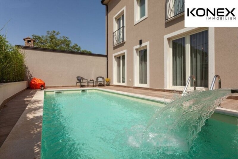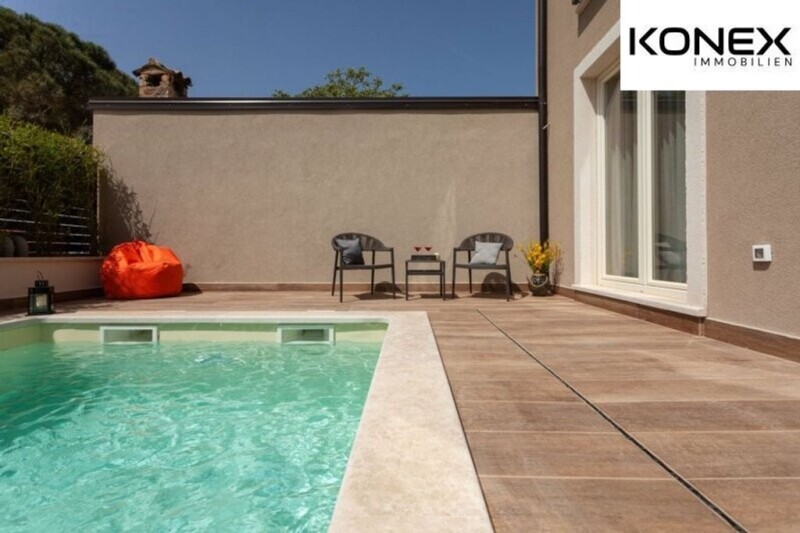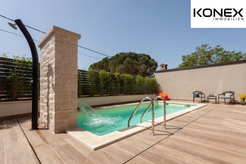 Beautifully furnished house with pool near Rovinj, Istria Property description: For sale is a beautifully furnished and fully equipped house in a small town near Rovinj in Istria. Built in 2018, the house offers 180 m² of living space, spread over ground floor, first and second floor, and is an ideal investment for both personal use and tourist rental. Layout and equipment: Ground floor: Large, modern kitchen Dining room Spacious living room with direct access to the garden Toilet Storage room/laundry room Outdoor area: Swimming pool Sun terrace Covered terrace with barbecue First floor: Two bedrooms, each with its own bathroom Additional room usable as a gym, playroom, office or additional bedroom Second floor: Two more bedrooms, each with its own bathroom Special features: All rooms are large and spacious High quality Italian furniture Air conditioning to regulate heating and cooling Possibility to install a fireplace Location and surroundings: The house is close to the sea, restaurants and beautiful promenades, which makes it particularly attractive for tourist rental. Contact us: Interested in this dream home? Contact us for more information and to arrange a viewing. Your contact: Telephone: +43 660 22 33 405 Email: immobilien@konex.at Was your suitable property not listed yet? We understand how important it is to find the perfect property that meets your needs. Regardless of whether you are looking for a studio apartment or an exclusive villa, we are at your side. Through our partnership with respected Croatian real estate experts, we have access to an extensive portfolio of high-quality properties. We look forward to helping you find your dream property. Note: The prices quoted are subject to availability and are subject to change. Please contact us for the most up-to-date information. This offer is non-binding and subject to changes and errors. According to the Energy Certificate Submission Act: After we informed you of the general submission requirement that applies from December 1st, 2012, an energy certificate has not yet been submitted by the owner or seller, or one is currently being prepared. Therefore, at least an overall energy efficiency corresponding to the age and type of building is considered to be agreed. No liability for typos, errors or information. We would like to point out that there is a close family or business relationship between the agent and the client. The agent acts as a double agent.