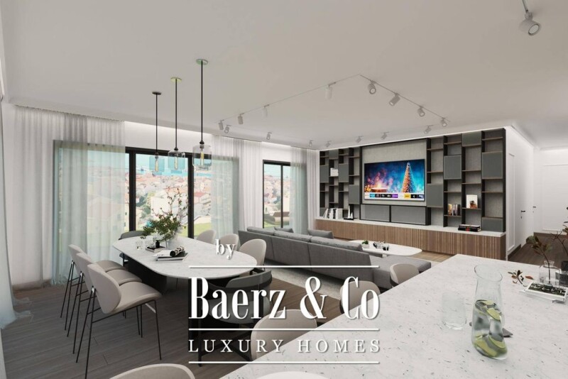 Makarska new building. A spacious penthouse S6, of 158 m2 with three bedrooms, three bathrooms, a large living room with a fireplace and a loggia of 44 m2, where it is structurally possible to install a summer kitchen and a hydromassage bathtub, and a unique view of the city of Makarska. An outdoor parking space at a price of 12,000 euros is not included in the price. For all other information on request.