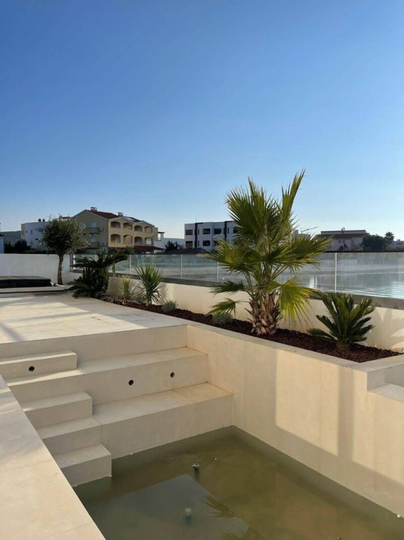 In the serene realm of Sukošan, ensconced by the waves along the Dalmatian shore, an elegant villa graces an exceptional position, standing sentinel as the first row to the sea. Modern Sukošan, a haven of elite tourism, famous for it's luxury yachting marina, akin to an oasis in the vast landscape, boasts proudly the grandest marina upon the Adriatic's coastal expanse. It unfolds a splendid tapestry of gastronomic excellence and witnesses the rise of opulent structures, a testament to its allure. Nestled in proximity to the airport, and with the city of Zadar merely 7 kilometers distant, it stands as a jewel in a well-connected crown. The villa, a sanctuary of refinement, unfolds across 276 square meters of net usable space, its foundations embracing a plot of land spanning 333 square meters. Four resplendent bedrooms, each adorned with an en suite haven, beckon the dweller to a terrace that unfolds a vista of the azure sea. On the ground floor, an open-concept ensemble of living, kitchen, and dining areas unfolds gracefully onto a terrace adorned with a pool—a pool whose waters dance to the rhythms of a heat pump, offering warmth and coolness in harmony. A jacuzzi and a barbecue find their place upon these grounds, the floors and the pool lined with the artisanal touch of first-class Italian ceramics in grand proportions. The villa extends its embrace to include additional amenities—a gym and a haven for billiards enthusiasts. Partially adorned with bespoke furnishings, including a tailored kitchen and wardrobes woven into hallways, bathrooms, and bedrooms, this property stands as a paragon of elegance, style, and astute architectural solutions. Throughout its creation, a meticulous attention to quality echoes in the choices of materials and equipment: A façade partially veiled in the grace of stone.A thermal façade, ranging from 8 to 15 cm, partially cloaked in wood paneling of a composite wood generation.The warmth of electric floor heating, weaving its embrace through bathrooms, kitchen, dining area, and living room, orchestrated by a pioneering heat pump.Internal staircases, both within and without, adorned with safety glass railings.The vigilant gaze of security cameras.A grand exterior of ALU craftsmanship, its three-paned visage at Cw 1.1.The delicate touch of mosquito nets, gracing every window.An electrolysis pool, eschewing the caress of chlorine for a gentler dance of crystalline waters.A home that thinks—a smart abode, orchestrated with complete Wi-Fi mastery.The sands before the house, an artistry of the investor's design.Anticipate the final crescendo of this coastal masterpiece by June 2024, a symphony of top-tier craftsmanship and avant-garde amenities, woven into the very fabric of Sukošan's seaside allure. Ref: RE-LB-IRO1781Overall additional expenses borne by the Buyer of real estate in Croatia are around 7% of property cost in total, which includes: property transfer tax (3% of property value), agency/brokerage commission (3%+VAT on commission), advocate fee (cca 1%), notary fee, court registration fee and official certified translation expenses. Agency/brokerage agreement is signed prior to visiting properties.