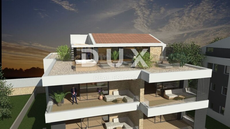 ISTRIA, ROVINJ - Luxury penthouse in a new building overlooking the sea Rovinj is a romantic Mediterranean, a destination for all those who crave the sentimental atmosphere of time that has passed irrevocably. Rovinj began its romantic life on an island whose cramped space conditioned the construction of compact houses, narrow streets and small squares that are still untouched by modern urbanism. Growing up in its rich fishing tradition, Rovinj has become recognizable for its unique batana boat, bitinada songs but also for spacio, a local version of a tavern or wine cellar where Rovinj people once kept, tasted and resold wine. Today in Rovinj and its surroundings there are the best Istrian restaurants and many interesting tourist attractions. The development of Rovinj is certainly due to the many beautiful beaches and proximity to the sea. In this beautiful place and only a few minutes easy walk to the sea and the old town is selling a luxury duplex penthouse overlooking the sea in a great location. The apartment is located on the second floor of a building with only three residential units and has a total area of 227.28 m2. The first floor consists of an entrance hall, two bedrooms with wardrobe and private bathrooms, guest toilet, pantry, open kitchen, dining room and living room with access to a covered terrace with a beautiful view of the sea and Rovinj. The total area of the first floor is 155.13 m2. The second floor of the apartment is the attic and has a total area of 72.15 m2. It consists of an entrance hall, bathroom, room that can be a sauna or pantry, bedroom with wardrobe and a spacious terrace with a beautiful view of the sea and Rovinj. The apartment has two outdoor parking spaces. The beginning of works is the 4th month of 2022. The deadline for completion of works is the end of 2023. The spacious apartments are designed in every detail and are built with high quality materials, and the building is also equipped with an elevator. Technical specifications Load-bearing structure: • foundations are reinforced concrete strips • foundation slab is reinforced concrete • basement walls are reinforced concrete • mezzanine structures are reinforced concrete • roof structure is reinforced concrete • load-bearing walls are hollow brick thermal blocks 25-30 cm thick • partition walls are hollow 10-20 cm thick • load-bearing columns and beams are reinforced concrete • elevator walls are reinforced concrete 25 cm thick Exterior cladding: • buried basement walls waterproofed with tar foil, thermally insulated with XPS panels 5 cm • exterior walls of the building thermally insulated EPS panels 10 cm (most) and 15 cm (smaller part) • part of the ground floor is covered with decorative stone • rain sheet metal is installed - galvanized painted sheet metal • the roof has thermal insulation 15 cm XPS board and waterproofing • building roof is Mediterranean tile Interior cladding: • walls are plastered with machine plaster • bathroom walls are covered with ceramic tiles Floors: • basement j e smoothed concrete • apartment floors are ceramic tiles and parquet • terrace floors are ceramic tiles • staircase is lined with stone Doors and windows: • external openings are Schüco aluminum locks • internal doors in the apartments are wooden • entrance doors for apartments are non-combustible T-30 (fireproof and burglar-proof) • Velux roof windows are installed in the attic. Heating system and hot water preparation: • each apartment has its own drinking water depurator • underfloor heating system is installed • apartments are additionally heated and cooled with indoor fan coil units • hot water is prepared in boilers located in the engine room, boilers are also connected to heat pumps • heat pumps from Mitsubishi Other: • fire protection is provided by internal and external hydrant network, and natural ventilation of the staircase , 56 m2 This apartment is a great opportunity for family life, a luxury vacation from the stress of city living that in the Mediterranean climate or as a financial investment for rent. Dear clients, agency commission is charged in accordance with the General Terms and Conditions: www.dux-nekretnine.hr/opci-uvjeti-poslovanja Marko Pavlović Vanjski suradnik E- www.dux-istra.com ISTRIA, ROVINJ - Luxury penthouse in a new building with sea view.