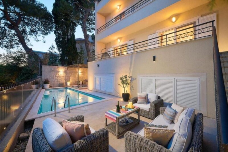 Wonderful classical style villa, with swimming pool and sea views only 50 meters from the beach! Perfect for residing in Split 365 days a year! Right by the beach, yet close to the centre and all amenities. Total area of this magnificent villa is 400 sq.m. Land plot is 300 sq.m. Nestled within the esteemed precincts of Split, a resplendent villa graces the real estate market with its allure. Poised with a southern orientation, this abode resides on a tranquil thoroughfare ensconced in Mediterranean verdure, mere minutes from the sandy shore, the waterfront, and the storied heart of the city. A paragon of opulence, this four-tiered mansion, seamlessly connected by internal staircases, unveils an interior adorned with tasteful refinement, each detail meticulously curated to craft an ambiance of exceptional comfort. The ground floor unfolds as a tapestry of spacious living, adorned with a fireplace, kitchen, dining enclave, pantry, and a cloakroom, all seamlessly linking to terraces that weave a seamless connection between the villa's interior and the verdant yard. Ascending to the first floor reveals three bedrooms, each with its private bath and terrace access, alongside an additional space purposed as an ironing room. The second floor crowns the residence with a master bedroom, complete with a fireplace, dressing chamber, and a luxuriant bathroom boasting a sauna. This level culminates in a capacious terrace, offering an arresting panoramic vista of the sea, the surroundings, and the enchanting sunset. The subterranean realm unfurls as an entertainment haven, replete with a projector, billiards, a wine sanctuary, a compact kitchen, an office space, and a lavatory. Before the villa, a commodious terrace beckons with a pool, jacuzzi, sun-soaked lounging area, and a barbecue corner. Completing the ensemble, the villa boasts a private garage, adding a final touch of convenience to this masterpiece of residential indulgence. Ref: RE-LB-20085Overall additional expenses borne by the Buyer of real estate in Croatia are around 7% of property cost in total, which includes: property transfer tax (3% of property value), agency/brokerage commission (3%+VAT on commission), advocate fee (cca 1%), notary fee, court registration fee and official certified translation expenses. Agency/brokerage agreement is signed prior to visiting properties.