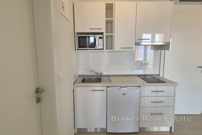 For sale is a beautiful apartment house with a sea view, spread over three floors. This property consists of five one-bedroom apartments and two studio apartments, and includes a garage and a storage room. The living area of the house is approximately 295 m², while additional spaces, including terraces, balconies, and the garage, total 87 m². The 180 m² garden provides a perfect place to relax, complete with a fireplace, table, and loungers. Each apartment is equipped with an air conditioning unit and has access to a terrace, balcony, or garden. The house also offers parking for multiple vehicles and is equipped with solar panels for energy savings. It is located near the beach, shops, and restaurants, and is only seven kilometers from Omiš. It is an ideal investment opportunity, as it has been successfully operating as a popular tourist destination for some time, providing a stable source of income and an excellent return on investment.