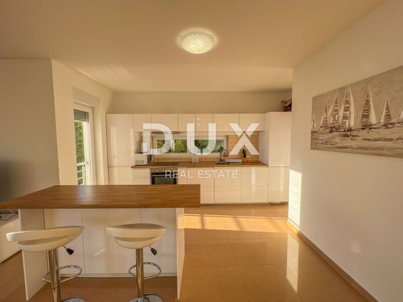 OPATIJA, IČIĆI - larger apartment in a newer building with a terrace, sea view, garage, close to the beach and Opatija We present a great opportunity for an investment by the sea in a newer building. It is being built in a larger apartment with a living area of 115m2 in a residential building of a modern character with rustic details not far from the Ičići beach and the town of Opatija. The apartment is located on the first floor and consists of a hallway, two bedrooms, space for built-in wardrobes, a large bathroom + 1 toilet and a large open space living room with kitchen and dining room. The living room communicates with a covered loggia, a 12m2 terrace with a beautiful view of the sea. The elevated position will guarantee privacy and peace. It is interesting that the apartment has a large amount of sun and daylight, and the blue sea stretches out from every window. The property of the apartment includes one parking space in the building's garage of 15 m2 and an outdoor parking space. There is electric underfloor heating in the entire apartment, and there are air conditioners for cooling in the summer. The building, which has an excellent garden with exotic plants, is only a two-minute drive to Ičići beach, and it takes literally 10 minutes to walk downhill. Access to the building is excellent, and it is located in an extremely high-quality neighborhood of Ičić. The drive to the center of Opatija is 8 minutes. This beautiful property is being sold completely newly furnished and ready to move into. A fantastic opportunity to invest in a larger property on the Opatija Riviera. Dear clients, the agency commission is charged in accordance with the General Business Conditions www.dux-nekretnine.hr/opci-uvjeti-poslovanja Marko Šutanovac Agent s licencom E- www.dux-opatija.com OPATIJA, IČIĆI - larger apartment in a newer building with terrace, sea view, garage, close to the beach and Opatija.