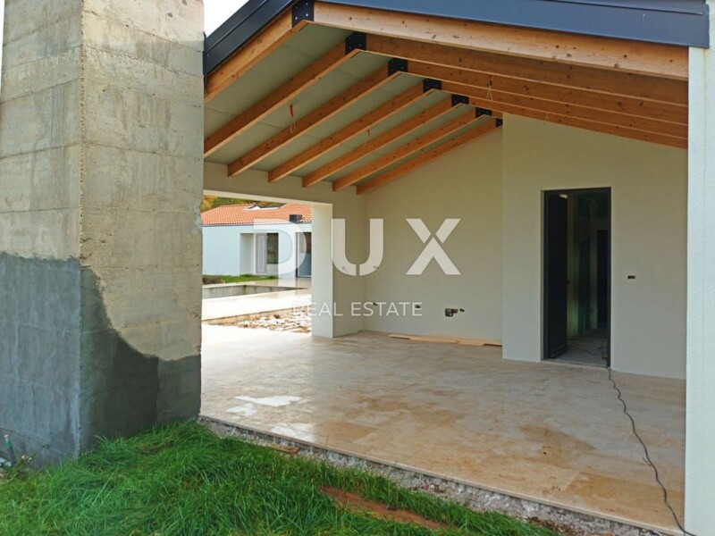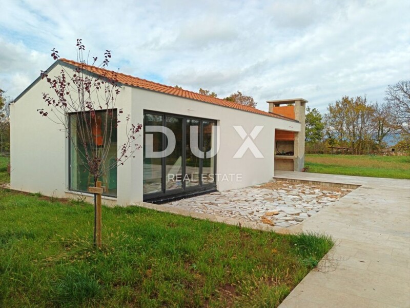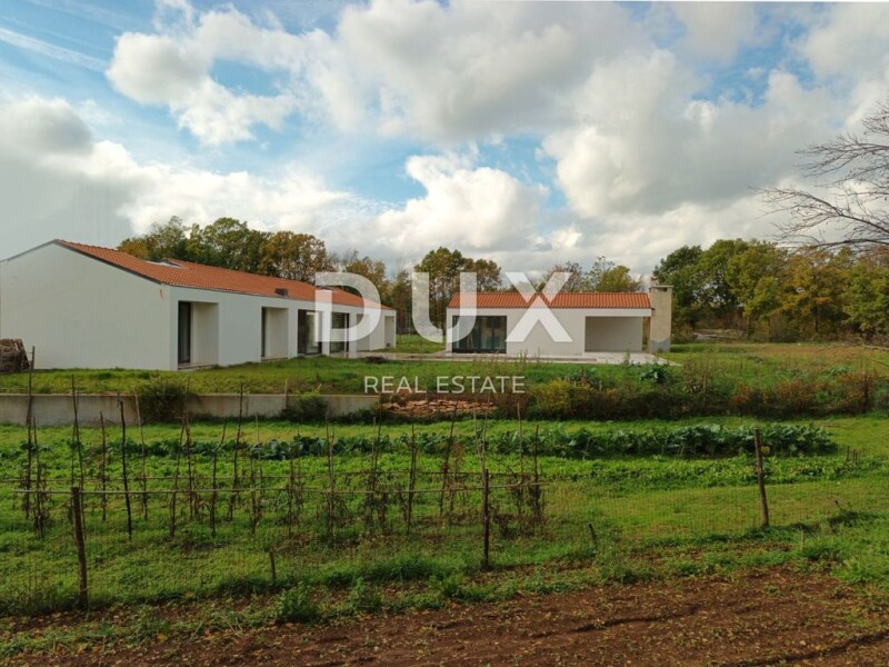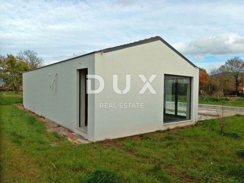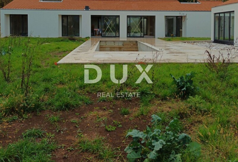 ISTRIA, LABIN - New construction on a spacious garden On the southeastern coast of Istria, at the place where the green hills meet the sea, where nature and heritage come together, there are two towns of similar size, but with different but mutually complementary characters - Labin and Rabac. The picturesque town of Labin rises on a hill 320 m high, only five kilometers from the white pebble beaches in Rabac. Intertwined with rich history and mining that marked this region, Labin, which was declared an independent republic for a short time, is today a fascinating city of contradictions; old and new, history and present, tourism and art. Not far from the town of Labin, there is a new building for sale on a spacious plot. It is located in a pleasant, green location in a quiet settlement. This modern one-story house is an example of a harmonious combination of classic form and modern details with the characteristics of transparency and spaciousness. The living area of 180 m² is clearly defined and used to the maximum and announces exclusivity in housing. Glass walls in the interior create a pleasant and bright ambience. The functional floor plan includes a centrally positioned space that unites the living room, dining room and kitchen, four bedrooms with their own bathrooms and wardrobes, a toilet, a storage room, a laundry room and a room for equipment. All living and sleeping rooms have direct access to the yard, while the living room and two bedrooms have their own winter gardens. Heating/cooling of the house is provided by air conditioners via a heat pump. Next to the house there is an auxiliary facility of 30 m² that can be converted into a wellness area or a studio apartment. The auxiliary facility also contains a covered summer kitchen and a bathroom. In addition to the main and auxiliary facilities, there is a swimming pool with a paved sunbathing area on a spacious and well-kept garden. This elegant modern style house is the perfect property for family life or as an investment for rental for tourist purposes. Dear clients, the agency commission is charged in accordance with the General Terms and Conditions. Iva Zajc Agent s licencom E- www.dux-istra.com ISTRIA, LABIN - New construction on a spacious garden.