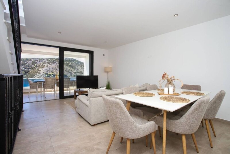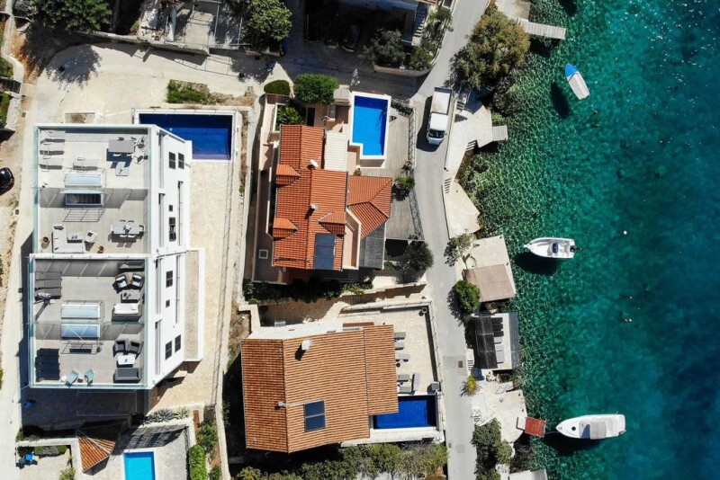 An elegant modern two-bedroom apartment with a sea view Apartment Lumis is an elegant, modern two-bedroom apartment. It is located in an attractive location in proximity to the seaside, beautiful sandy and pebble beaches, and natural surroundings this village close to Trogir has to offer. The apartment features 100 square meters of living space, organized on two levels of a building with a fantastic sea view. The building stands out with its modern architecture and is ideally incorporated into the environment of this authentic place. The lower level comprises an entrance area connected to a spacious hallway, two bedrooms, and a modern bathroom. The open-concept upper level consists of a fully equipped kitchen with the highest quality appliances, a dining room, a spacious living room with a spectacular view of the sea and beautiful surroundings, and a toilet. The internal staircase connects both levels. This fantastic apartment features a spacious loggia on the upper floor with an elegant outdoor sitting area and a rooftop terrace, one of this apartment’s highlights that overlooks this breathtaking area. A rooftop terrace is a place where you can relax and enjoy the Mediterranean ambiance in a quiet environment away from the city crowds. Parking place provides an additional level of comfort. The apartment’s elegant interior complements perfectly with this village’s exclusive location. Stunning location close to the sea and beach, quality construction, spectacular sea view from almost every corner, proximity to the International Split airport, proximity to Šibenik, Trogir, and Split – all on UNESCO World Heritage List, and proximity to several marinas are some of the advantages of the apartment. Apartment Lumis is an exquisite property that provides unforgettable moments in this breathtaking hidden gem of the Adriatic and is an ideal choice for admirers of the Mediterranean lifestyle who want to enjoy an enchanting natural ambiance without compromising quality or comfort all year around. At the same time, it represents an excellent investment opportunity with immense potential for tourist rentals.