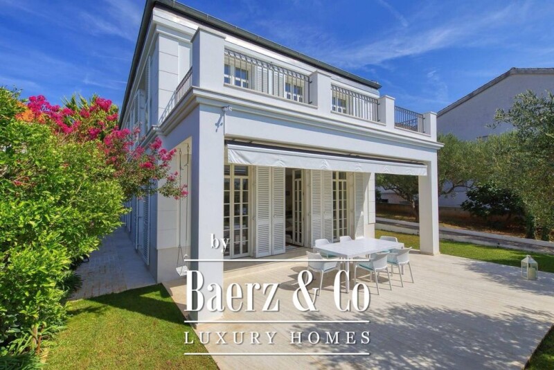 Zadar, Diklo, a beautiful, modern villa is located on a plot of land of 595 m2. It is spread over two floors and was built according to a high German standard. The ground floor consists of a spacious kitchen, dining room and living room with access to the terrace, guest toilet, technical room, and laundry room. On the second floor there is a master bedroom with a wardrobe, and two smaller bedrooms, two bathrooms, a sauna and a terrace with a beautiful view of the sea and the islands. Top quality materials were used in the construction and furnishing of this villa: Oventrop underfloor heating, Daikin altherma air conditioner, alarm, cameras, WK2 burglar-proof windows, KAT5 plus SONOS (wireless home music system) device provided in every room, solar panel on the roof, irrigation... The house is surrounded by a beautifully landscaped yard, where there is also space for socializing and dining. This villa offers the perfect combination of comfort, luxury and a stunning sea view. Due to its unique appearance and location, this villa is an excellent opportunity on the real estate market. For more information and viewing of the property, feel free to contact us.