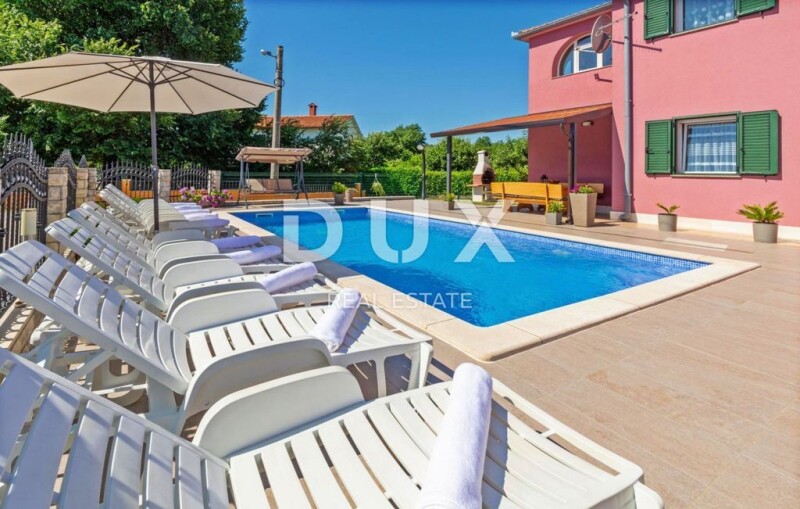 ISTRIA, LABIN - A house with a swimming pool in the suburbs On the southeastern coast of Istria, where green hills meet the sea, where nature and heritage meet, there are two towns of similar size, but with different but mutually complementary characters - Labin and Rabac . The picturesque town of Labin rises on a hill 320 m high, only five kilometers from the white pebble beaches in Rabac. Intertwined with rich history and mining that marked this region, Labin, which was declared an independent republic for a short time, is today a fascinating city of contradictions; old and new, history and present, tourism and art. In the suburbs of the town of Labin, a house with a swimming pool is for sale. The house extends through the ground floor and first floor and consists of two residential units. One residential unit extends over two floors. It consists of a living room, kitchen, dining room, bedroom, bathroom and storage room on the ground floor, while on the first floor there are two bedrooms with access to the terrace and a bathroom. On the ground floor there is also a playroom with access to the garden, a storage room and a room for equipment. The second residential unit is located on the first floor and consists of a living room, dining room, kitchen, two bedrooms and a bathroom. Next to the house there is an auxiliary facility of 50 m² and consists of a living room, kitchen, dining room, bedroom and bathroom. Next to the house is a swimming pool with a sunbathing area. The yard is landscaped and fenced. Ideal property for family life or as an investment for rental for tourist purposes. Dear clients, the agency commission is charged in accordance with the General Business Conditions: www.dux-nekretnine.hr/opci-uvjeti-poslovanja Iva Zajc Agent s licencom E- www.dux-istra.com ISTRIA, LABIN - House with swimming pool in the suburbs.