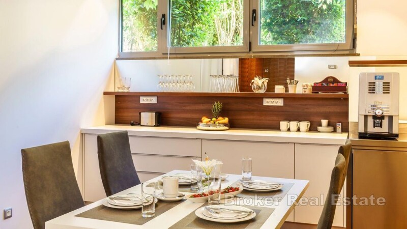 An excellent newly renovated hotel with 11 elegant rooms, an outdoor pool, and a sunbathing area, located in a perfect spot close to the sea and the beach. The hotel is situated on the ground floor of a commercial-residential building and offers 11 rooms, each with its own private bathroom, as well as additional amenities such as a Finnish sauna and jacuzzi. Guests can also enjoy the well-equipped gym, breakfast services, and a reception area with separate restrooms. The hotel features several outdoor and garage parking spaces, is fully equipped, has its own laundry facilities, and all areas are air-conditioned. Completely newly equipped and renovated in 2019, the property requires no further investment. It is registered as a 4-star establishment and operates successfully during the six-month season, ensuring excellent revenue. It is located just a 5-minute walk from the popular Žnjan beach and a 10-minute drive from the UNESCO-protected Diocletian's Palace.