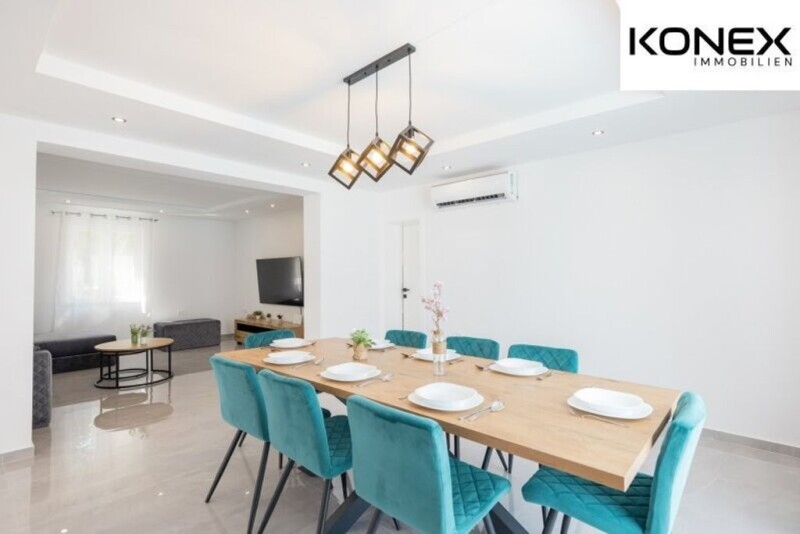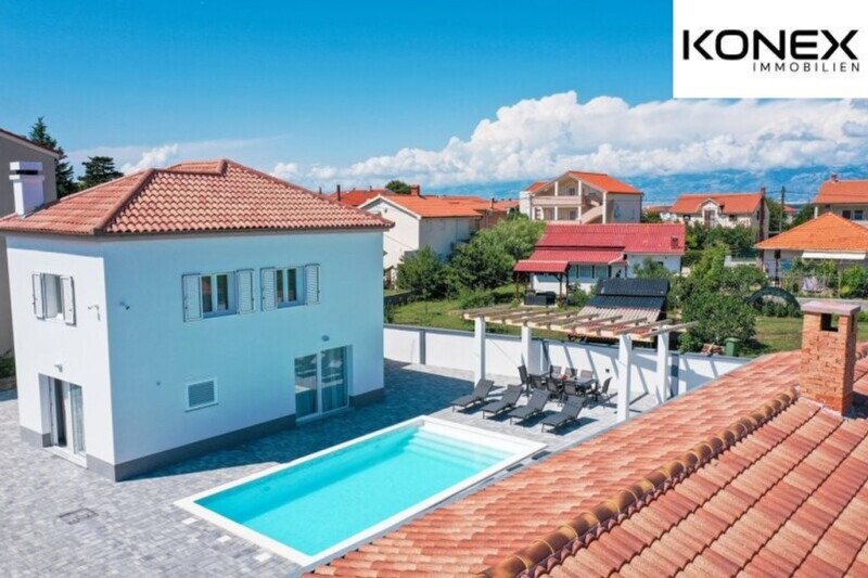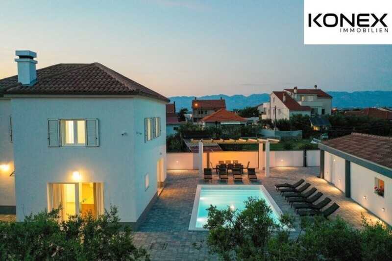Attractive town villa with pool in an excellent location in the immediate vicinity of Zadar is for sale! This modern villa extends over the ground floor and the first floor. On the ground floor there is a fully equipped kitchen, a spacious living room, a separate dining room, a guest toilet and an elegant staircase. The first floor has a spacious hallway and three comfortable bedrooms, each with its own bathroom. An outbuilding completes the property, which includes a 40 m2 wine cellar, a storage room, a sauna and a fitness room. The well-kept outdoor area impresses with a beautifully landscaped garden that offers a view of the 32 m2 pool. This property presents itself as an outstanding investment opportunity in an upscale residential area with excellent infrastructure and proximity to Zadar. Has your suitable property not been there yet? We understand how important it is to find the perfect property that meets your needs. Regardless of whether you are looking for a studio apartment or an exclusive villa, we are at your side. Through our partnership with respected Croatian real estate experts, we have access to an extensive portfolio of high-quality properties. If you are interested in our service, please contact us by phone at +43 660 22 33 405 or by email at immobilien@konex.at. We look forward to helping you find your dream property. This offer is non-binding and subject to change and errors. According to the Energy Certificate Submission Act: After we informed you of the general obligation to submit an energy certificate, which applies from December 1st, 2012, the owner or seller has not yet submitted an energy certificate or one is currently being prepared. Therefore, at least an overall energy efficiency corresponding to the age and type of the building is considered to be agreed. No liability for typos, errors or information. Zadar.