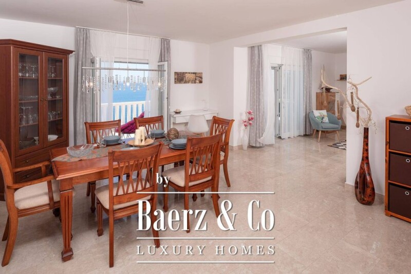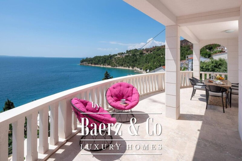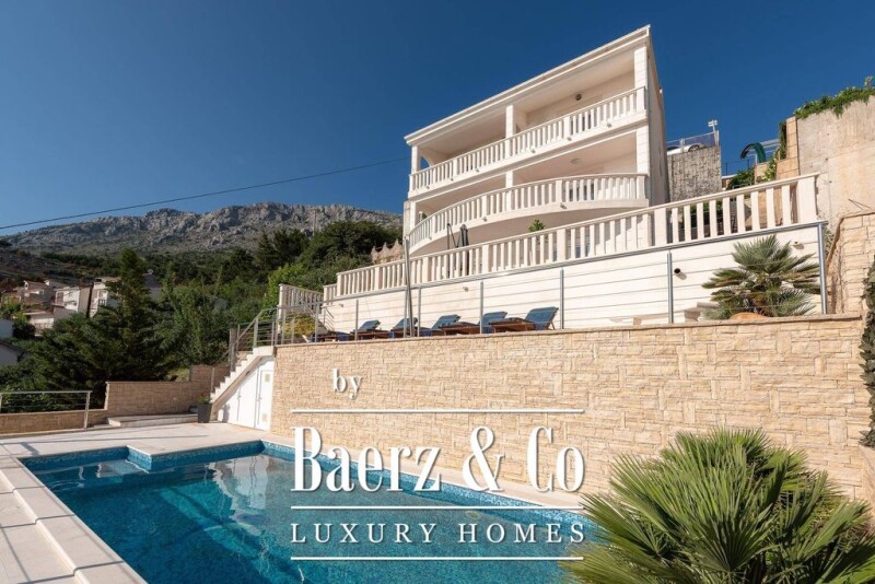 Omiš, Stanići - a detached house with a swimming pool in a beautiful location, second row to the sea. The house with a gross area of 243 m2 is just a few minutes' walk from the pristine pebble beach. It is located on a plot of 673 m2 with as many as six outdoor parking spaces. The house consists of a ground floor and two floors, on the ground floor there is a one-room apartment with access to a terrace and a pool, and on the upper floors there are two spacious two-room apartments with terraces. The yard is easy to maintain, in addition to the swimming pool and sunbathing area, there is also a storage room and an outdoor grill. The exterior of the house is covered with Brač stone and the house is sold fully furnished. Private stairs lead to one of the most beautiful beaches of the Adriatic. And thanks to the configuration of the terrain, the entire area by the sea is car-free. All apartments offer a beautiful panoramic view of the bay and the island of Brač, the house is only a few minutes' drive from Omiš, and in the immediate vicinity of shops, restaurants and bars. More information on request.