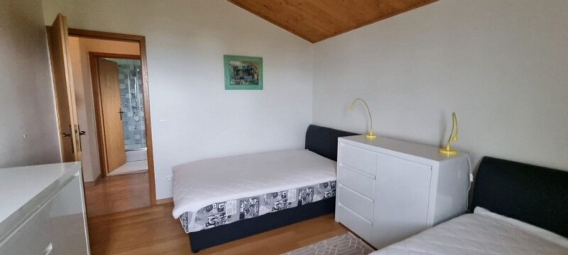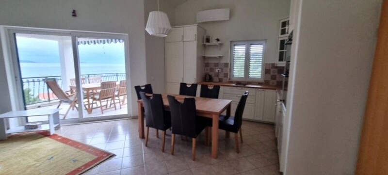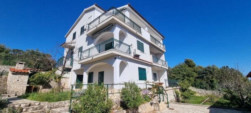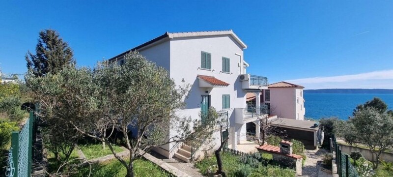 House with three apartments in a panoramic location with sea views. This apartment building on the island of Ciovo, connected to the mainland by a bridge, impresses with its quiet location and proximity to the sea. Only about 120 meters separate the approximately 1043 m² plot from the picturesque seashore, with a beautiful beach within walking distance. The house offers approximately 375 m² of living space, spread over three floors, with one independent apartment per floor. Each apartment has three bedrooms, a bathroom, a separate toilet, an open-plan living, dining, and kitchen area, and spacious terraces. The lower floor also includes a tavern and a cistern, while a approximately 50 m² garage offers additional comfort. All units are air-conditioned and furnished. An adjacent plot of approximately 390 m² can be purchased for EUR 120,000. Please contact us for further details or to arrange a viewing. Furnishings, air conditioning, garage (approx. 50 m²).