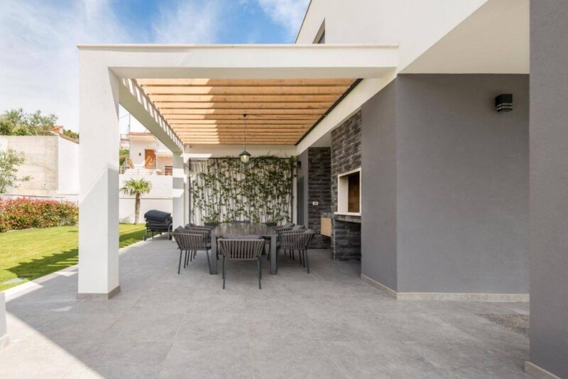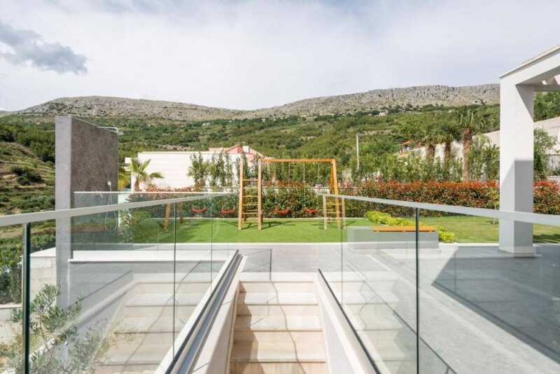 Location: Podstrana Built: 2018 Split center: 10 km Sea: 0.35 km Airport distance: 22 km Inside space: 363 m2 Plot size: 1018 m2 Bedrooms: 4 Bathrooms: 4 Swimming pool: 81 m2 Parking: 6 Air-conditioner Sauna Cameras Patio Playground Garden.