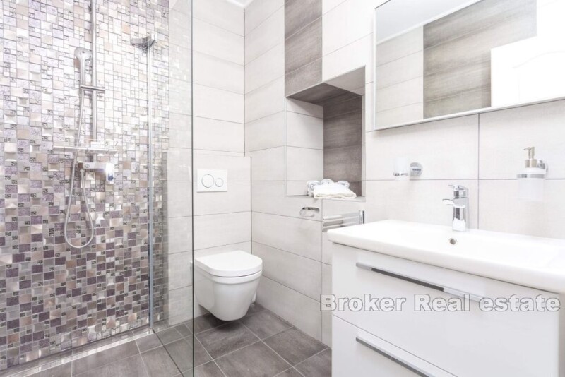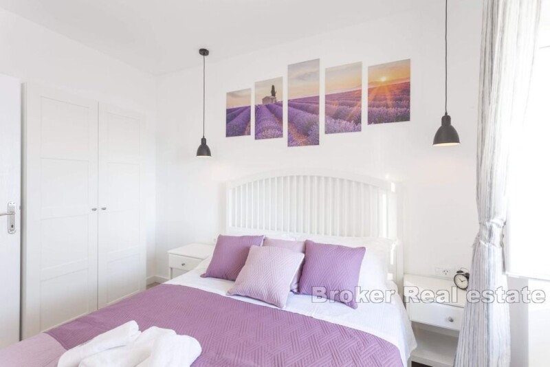 At a unique location in Živogošće, right by the coast on the Makarska Riviera, a traditional stone terraced house is for sale. This property, with a total area of 105 m², is spread over three floors, featuring three separate apartments, each comprising a kitchen with a dining and living area, a bedroom, a bathroom, and a balcony. Each apartment is modern and stylishly furnished and fully equipped, offering everything needed for a comfortable stay. The house provides a spectacular, unobstructed sea view, creating an ideal setting for relaxation and enjoyment of nature's beauty. Due to its exceptional location and proximity to the sea, this property represents an excellent investment opportunity in tourism. It is located approximately 20 kilometers from the center of Makarska, providing great connectivity to essential amenities required for everyday life.