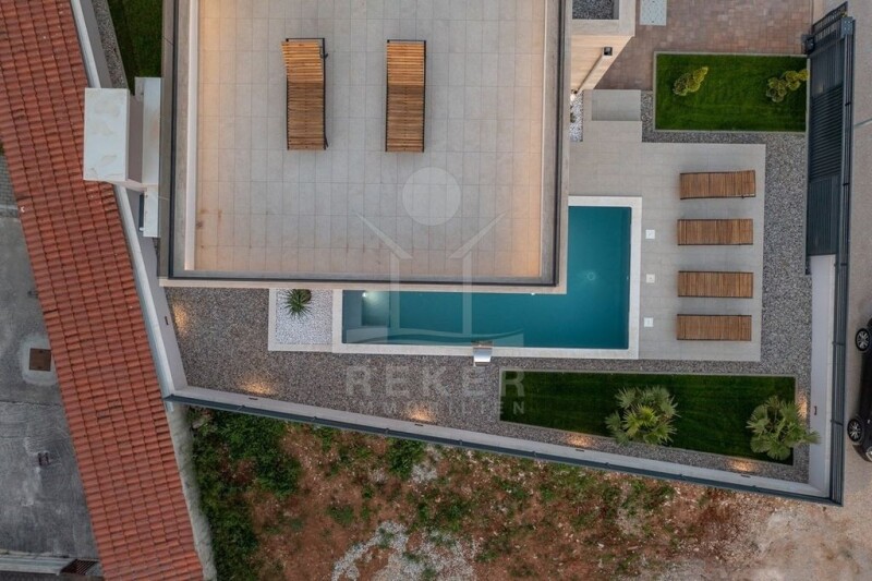 For first occupancy: Luxury villa with pool, sauna, outdoor kitchen and more This spectacular luxury villa offers a spacious living area of approx. 386 m² and is located on a plot of approx. 466 m². The long list of highlights begins with the wonderful outdoor area with pool and summer kitchen with grill, continues with the in-house spa area with sauna and fitness corner and finally culminates on the roof terrace with a fantastic view of the sea just 150 m away. Only the highest quality materials from well-known manufacturers were used in the construction and furnishing. ~.
