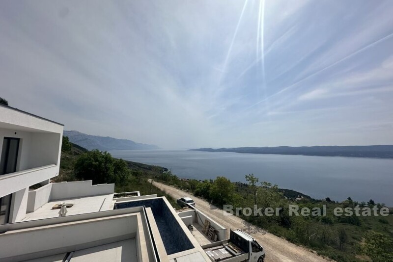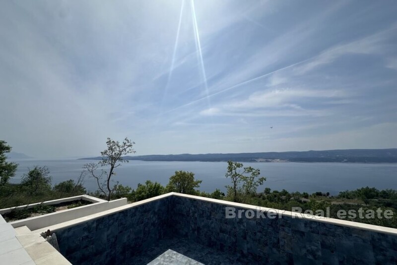 A villa for sale near Omiš with a panoramic view of the sea and islands. It is located on a plot of 560 m2 with a swimming pool, sunbathing area and a small playground for children. The property itself extends over two floors and consists of a kitchen, dining room, living room, bathroom and storage room on the ground floor. The first floor consists of a bathroom and three bedrooms with access to the balcony. There is also a laundry room and a spacious uncovered terrace on the first floor. In a separate, separate part of the house, there is also a separate room that can be used as a bedroom, office or studio apartment because it has its own bathroom.