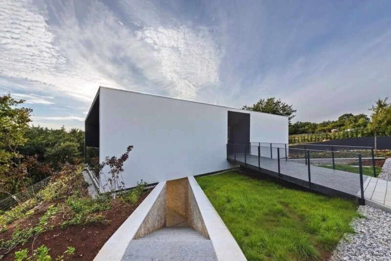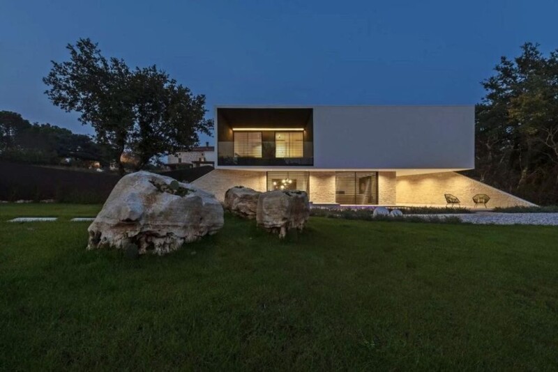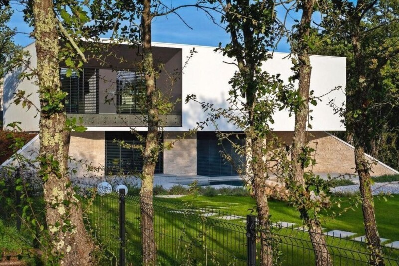 Superb design villa in Poreč area! Total area is 251 sq.m. Land plot is 1445 sq.m. The location offers an authentic experience of a small Istrian town, intimacy and a break from the noise, and at the same time it is close to the dynamic cities of Istria with a range of amenities. It is oriented towards the south and is located on the edge of a small town with only a few inhabitants. The property provides a high standard of living. High EU standards in construction and materials were fully applied, as well as top-quality equipment and furniture in furnishing. It is characterized by modern architecture with dynamics in exterior and interior design. The combination of clean lines, stone and glass achieves a special visual character and an extremely modern design. In accordance with the pure modernist architecture, the interior of the house, bathed in natural light, stands out with a minimalist style through top-quality equipment and elements of modern custom-made furniture in combination with building materials, such as concrete and Terrazzo tiles. It is designed as one residential unit that extends over two floors. The main entrance to the villa is on the upper floor. The floor consists of four bedrooms, each with access to one of the loggias, four bathrooms, one of which contains a sauna, a laundry room and an entrance area/hallway with a staircase. Level with the upper floor, a carefully designed driveway offers parking spaces for two vehicles as well as access via an external staircase to the lower floor and the garden. The lower floor consists of an open concept space that unites the living room, dining room and kitchen, which opens with sliding glass walls onto a covered terrace towards the outdoor area and the swimming pool with sun deck. The floor plan of the floor is complemented by a guest toilet and a technical room. On the level with the lower floor there is also a separate, perfectly integrated summer kitchen with an open fireplace and storage. The yard is fenced, minimalistically decorated, and the lawn extends into the depth of the plot in contrast to the forest that surrounds it. Far from the hustle and bustle of the city with the silence and peace that reigns and the greenery that surrounds it, this property is an exceptional opportunity for a peaceful family life as well as an investment for the purpose of tourist rental. Ref: RE-U-24211Overall additional expenses borne by the Buyer of real estate in Croatia are around 7% of property cost in total, which includes: property transfer tax (3% of property value), agency/brokerage commission (3%+VAT on commission), advocate fee (cca 1%), notary fee, court registration fee and official certified translation expenses. Agency/brokerage agreement is signed prior to visiting properties.