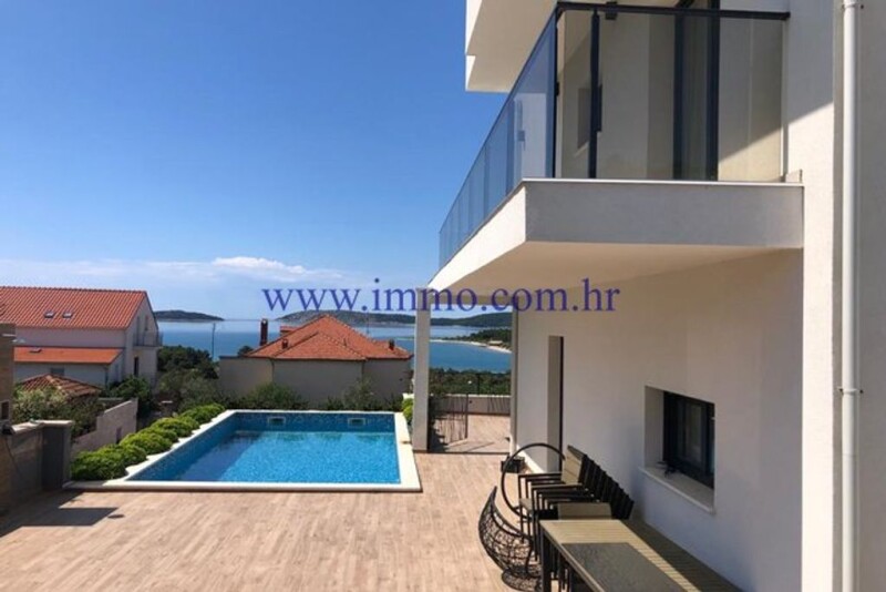 OPPORTUNITY! REDUCED PRICE! Beautiful new villa for sale, located near Sibenik, 200 meters from the sea and the beach. The house has an area of 350 m2, is located on a plot of 530 m2, has three floors and offers beautiful views of the sea and the surrounding area. The ground floor and first floor are occupied by a duplex apartment. On the lower level there is a living room with kitchen and dining area, bathroom and study. The living room has direct access to a spacious terrace with pool. On the upper level there is a master bedroom with wardrobe and bathroom, two bedrooms, bathroom and laundry. All rooms have a balcony overlooking the sea. On the second floor there are two guest apartments with separate entrances. Each apartment consists of a living room, kitchen, bedroom and bathroom. From the living room there is an exit to the balcony with a beautiful view of the sea and the surroundings. The villa is surrounded by a beautiful and well-maintained plot with Mediterranean plants, terraces, swimming pool, outdoor grill and a garage of 25 m2. On the plot next to the villa there is a parking lot for several cars. The villa is fully furnished and equipped, has air conditioning in all rooms, underfloor heating, solar panels ... GREAT INVESTMENT! Infrastructure: electricity, water, sewage. Additional information about the facility, its exact location and sightseeing is possible after signing a brokerage agreement with the agency that is in accordance with the Data Protection Act and the Real Estate Brokerage Act.