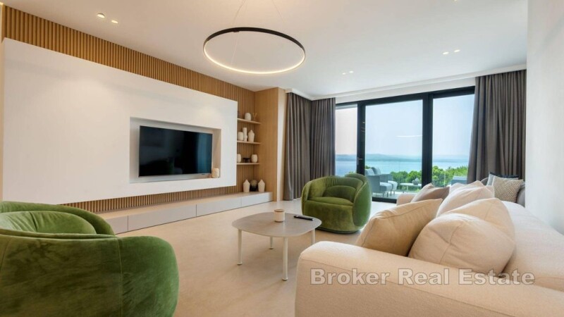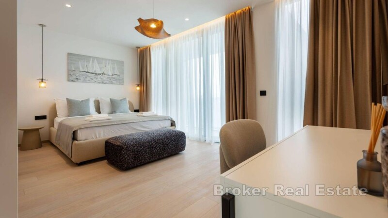 A unique holiday villa is offered for sale, an exclusive villa only 100 meters from the sea and located in Baška Voda, near the towns of Makarska and Split. It is positioned on the south side and exudes the highest comfort, modern interior and elegant design. It offers a combination of traditional Mediterranean charm and modern comfort. With a lot of attention to interior and exterior details, modern technical equipment, the latest building materials with a magical touch of glamour, this villa provides a luxurious vacation for every family. It was built on four floors. It consists of 4 spacious rooms, 6 bathrooms, swimming pool and quality garden furniture with grill for preparing delicacies, outdoor parking and garage, gym, elevator and numerous balconies and open and partially covered terraces. In the basement there is a large garage and part of the space for outdoor parking. On the ground floor there is a spa with a gym and a bathroom. On the first floor there is a bathroom and a spacious living room that is a combination of elegance and a perfect place to relax with the family, a dining room and a kitchen from which you can go out to a partially open terrace to enjoy with a pool and barbecue. The villa is fully air-conditioned. On the second floor there are 4 spacious rooms with 4 bathrooms. Each room has its own private balcony. The building is sold fully equipped and furnished with high-quality interior and exterior (home appliances, flat screen TVs, LED lighting, automatic cooling system, etc.). The property is a unique choice due to its southern location/Mediterranean climate, proximity to the sea of only 100 meters, the building's architecture and modern equipment, numerous sandy beaches nearby. The place is 40 km from the nearest larger city of Split and 70 km from Split airport.