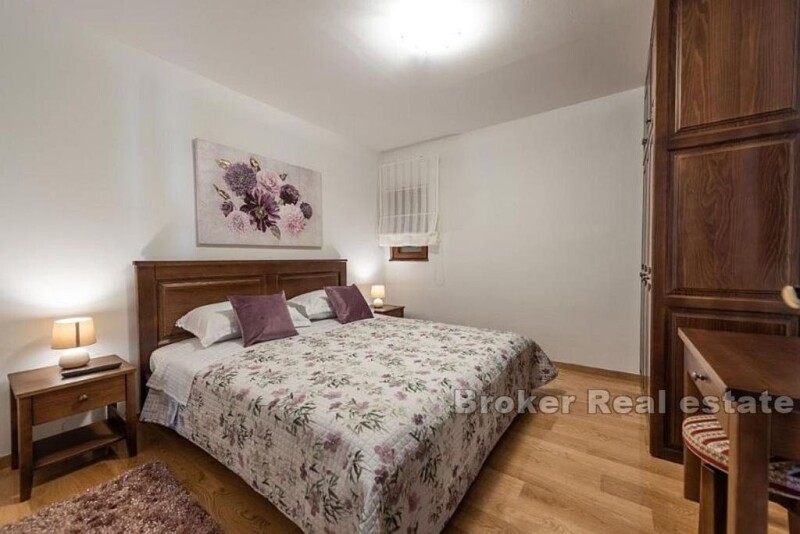 For sale is a house with a swimming pool located in the vicinity of Zadar. Built in 2019 with premium materials, this property showcases authentic stone and brick, complemented by extensive use of wood both inside and outside the home. Located on a plot of 620 m2, the living space extends to 102 m2. The exterior has a private entrance, spacious parking, garden and swimming pool. The ground floor consists of two entrances; one leads to the residential area, and the other to the tavern. The house consists of a kitchen and dining room, a living room, two spacious bedrooms and two bathrooms. A separate entrance leads to the rest area, i.e. the tavern with its own bathroom. Over the past three years, the property has been successfully used for tourism purposes, garnering excellent business results and reviews – an attractive prospect for future owners. In addition to the tourist potential, this residence can also be used for private purposes, ideal for weekends or holidays, thanks to its peaceful environment and privacy.