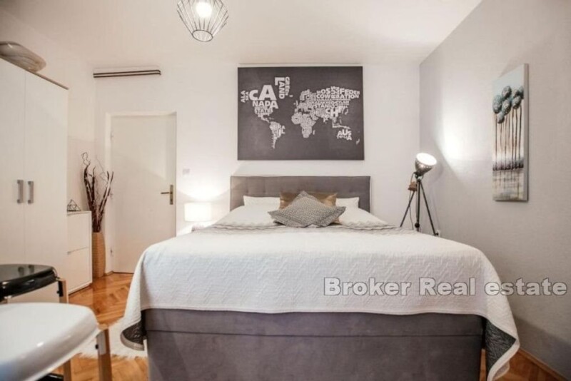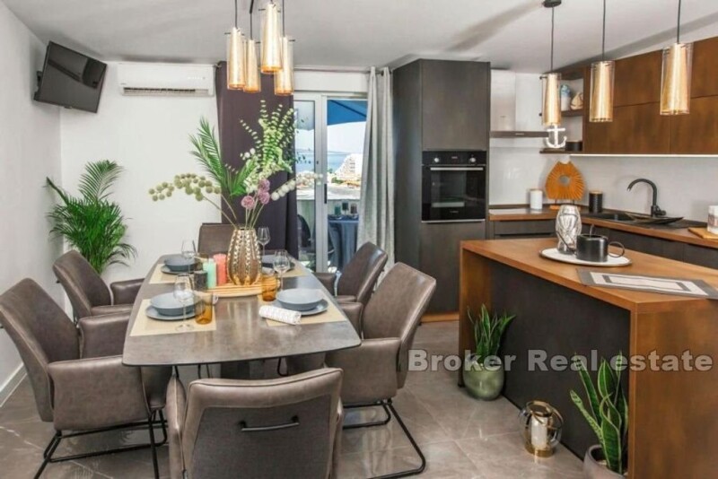 An apartment house renovated in 2019 is for sale. An ideal opportunity for those who see this investment as an investment in seasonal tourism. The price includes land on which a building with 8 apartments can be built in order to increase the accommodation capacity and expand the offer. The total area of the building and land is 788 m2, while the house itself has a floor plan of 244 m2. The building consists of 690 m2 of total living space, has a beautiful view of the sea, 8 parking spaces and one garage. It was renovated in 2019. The ground floor consists of 2 apartments each with a square footage of 90 m2. The first apartment consists of a living room, a dining room, two bedrooms and two bathrooms. The second apartment consists of three bedrooms, dining room, small basement of 7 m2, bathroom and terrace. Both apartments are in good condition. The first floor consists of a large apartment with a total living area of 80 m2, and consists of two bathrooms, two bedrooms, a living room, a kitchen and a balcony with a wonderful view of the sea. On the first floor there are also 4 studio apartments with a total living area of 128 m2 and a terrace. On the second floor there is a large apartment with a total area of 138 m2. It consists of 3 bedrooms, 3 bathrooms, one toilet, a large living room, a kitchen and a large terrace. On the roof of the building there is a terrace of 80 m2 on which there is the possibility of installing a swimming pool or jacuzzi. Each unit is equipped with air conditioners. In the yard there is parking for all 8 units, a shared barbecue and a garden. As mentioned before, along with the property, land for the construction of a building of 8 apartments, each approximately 55 m2, is for sale. An ideal opportunity for those looking for an investment in the form of tourism.