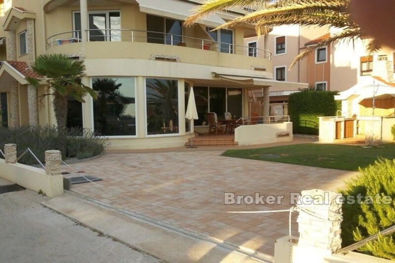 Luxury apartment, near Zadar, 5 meters from the sea with garden and private parking. The exclusive property of 212m is located in the first row to the sea and overlooks a covered terrace and garden of 290m. The very rare view provided from the property will satisfy every buyer. The apartment, in addition to being built with top quality materials, is equipped with high quality appliances in every room. It consists of four bedrooms, two bathrooms with toilet, kitchen and dining room. Within the garden there is one uncovered parking space and a fireplace. In addition to outdoor parking, the price includes a closed garage with storage. Important locations such as supermarkets, pharmacies and hospitals are within 3 kilometers. The apartment is ideal for families or for tourist purposes due to the quiet environment.