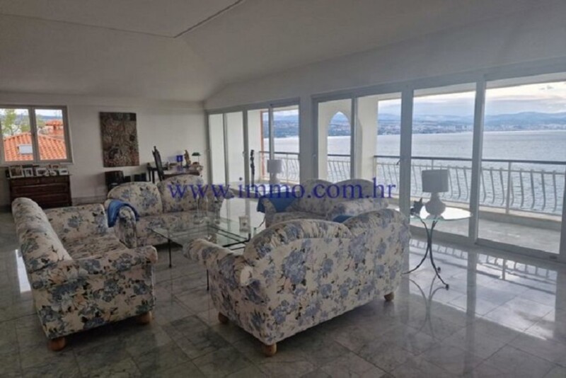 For sale is beautiful villa located in first row to sea, on shores of Opatija - pearl of Adriatic. Villa has three floors, it's situated on slight slope and has amazing panoramic view to sea and surroundings. On ground floor is a kitchen with pantey, bedroom with en suite bathroom, area that opens to a covered terrace with sea view and an adjoining master bedroom with a bathroom. On this floor is also one more bedroom with foyer and its own bathroom. Bedroom has access to a garden. Internal stairs lead to upper floor which consists of spacious living room with access to covered terrace, kitchen and guest toilet. Thanks to the large floor-to-ceiling windows, the living room is full of natural light and enjoys a stunning panoramic view of the sea. Basement has separate entrance and staff accomodation consisting of living room, kitchen, bedroom and bathroom. In front of the villa there is a spacious terrace below which there's a laundry room and storage space. Villa is surrounded by spacious garden where palm trees and other plants grow, which gives it a special charm, and if desired, an infinity pool can be equipped on the plot. The villa has parking for two cars and a berth for a yacht. There is a possibility of building a garage or expanding the parking lot for 4 more cars. Villa is built with high-quality materials, decorated with marble, granite and parquet, and has central heating and air conditioning. This beautiful property offers a variety of options - from a family residence to a luxury boutique hotel. Infrastructure: electricity, water, sewerage, paved entrance. Additional information about the facility, its exact location and sightseeing is possible after signing a brokerage agreement with the agency that is in accordance with the Data Protection Act and the Real Estate Brokerage Act.