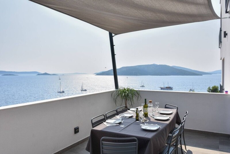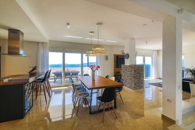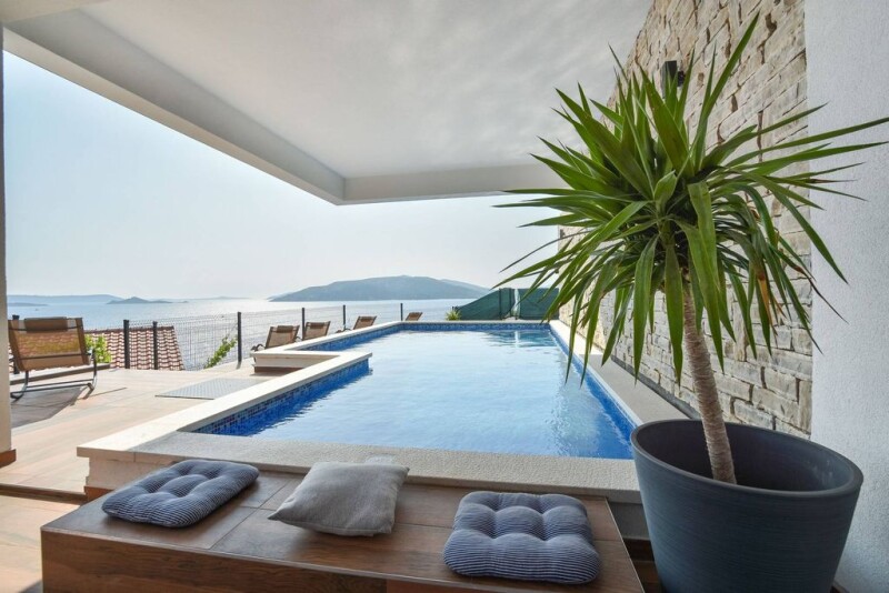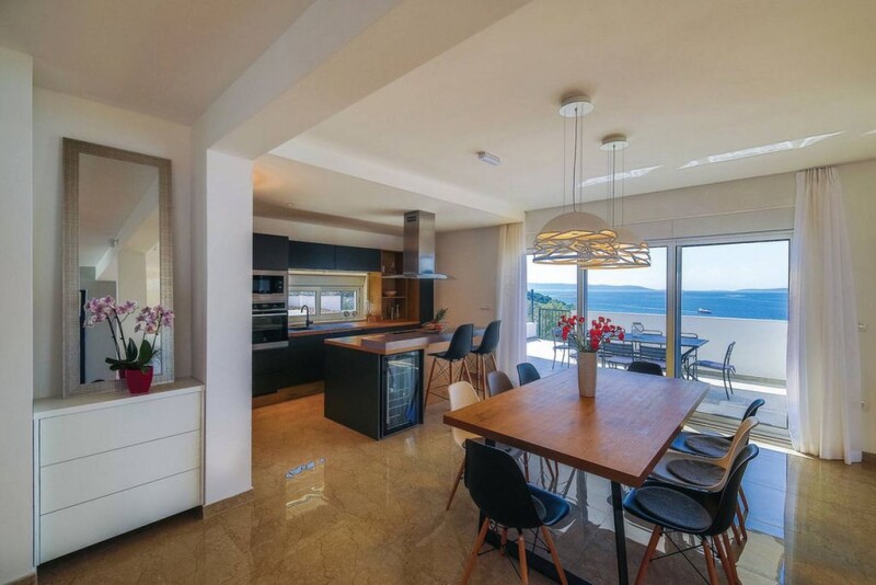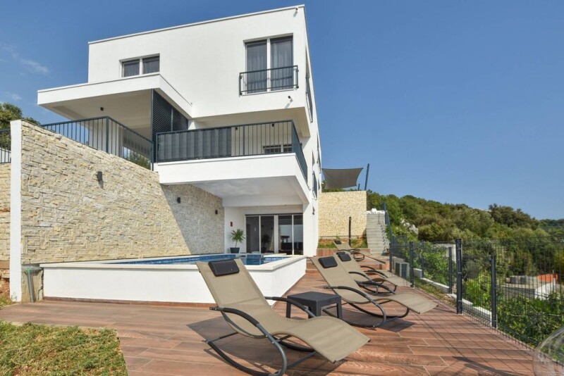 Villa Eminence is an attractive modern design villa representing the perfect fusion of contemporary architecture and enchanting natural surroundings. This elegant property is located in a picturesque bay on the island of Čiovo, allowing you to enjoy scenic pebble beaches and crystal clear waters, as well as numerous cultural and historical attractions in nearby towns of Trogir and Split, which are included in the UNESCO World Heritage list. The contemporary interior of the villa boasts sumptuous furnishings and high-end equipment that offers maximum comfort with a decent touch of luxury. This 325 - square meter villa is organized on three levels, and it includes sophisticated features such as a sauna, hydromassage tub, gym equipment, and heated pool. The open concept ground floor consists of a fully-fitted kitchen, dining room, and spacious living room that offers a glorious sea view. There is also one double ensuite bedroom, a storeroom, and a guest toilet. On the upper floor, four exclusively equipped bedrooms with private bathrooms guarantee utmost enjoyment and uncompromising luxury. The villa's basement is organized as a spa oasis with a sauna, hydromassage tub, billiard table, and gym equipment. The villa features a beautifully organized courtyard area with a modern pool, comfortable sun loungers, and an outdoor dining area with a barbecue for unforgettable summer evenings with friends and family. You can enjoy an open sea view from almost every corner of this superb property. Thanks to the attractive position of the villa, you can easily reach the beach and enjoy an inviting Mediterranean ambiance all year long. The island of Čiovo is well-connected to the mainland thanks to the newly built bridge, and the Split Airport is only 10 kilometers away. The ultimate contemporary elegance of villa Eminence ideally complements the Mediterranean landscape and invites you to enjoy the easygoing ambiance and relax.