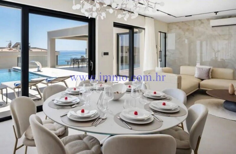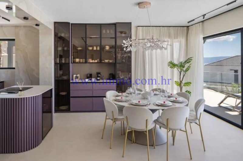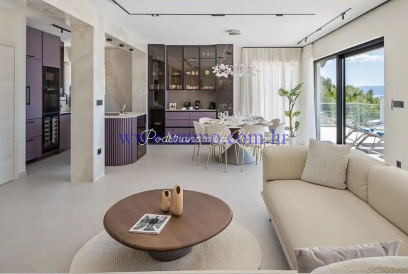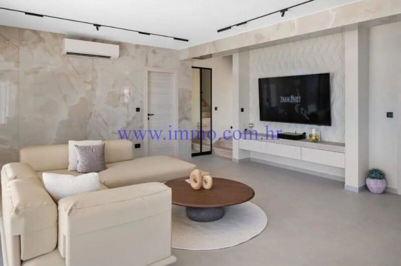 BEAUTIFUL NEW VILLA NEAR SPLIT For sale is an impressive villa in Podstrana, built in 2024, with 370 m2 of living space. Situated on a plot of 620 m2, this property offers exceptional comfort and luxury with a unique sea view. This contemporary villa is ideal for those looking for a peaceful location, with a southern orientation that ensures plenty of sunlight throughout the day. The designer interior provides a perfect balance between aesthetics and functionality, and is equipped with modern furniture and technology. In the basement of the villa there is a garage for two cars and a relaxation area that includes a bar, pool table, sauna, jacuzzi and bathroom. On the ground floor there is a spacious living room with kitchen and dining area, a bedroom with an en-suite bathroom and a storage room. The first floor contains three comfortable bedrooms with bathrooms. Each bedroom has a loggia with a beautiful panoramic view of the sea, the surroundings and the sunset. Additional amenities include a spacious terrace, with an infinity pool and sun deck, and a covered terrace with a summer kitchen and table for outdoor dining, a barbecue and a covered lounge area, ideal for relaxation, while security doors ensure extra peace. Podstrana as a location offers extraordinary proximity to the sea, and the infrastructure includes all the necessary facilities for a comfortable life. We invite you to see for yourself the uniqueness of this property and its possibilities for enjoying a carefree life. For any additional information or to arrange a viewing, feel free to contact us. Additional information about the facility, its exact location, and a viewing are possible after signing a brokerage agreement with the agency that complies with the Personal Data Protection Act and the Real Estate Brokerage Act.