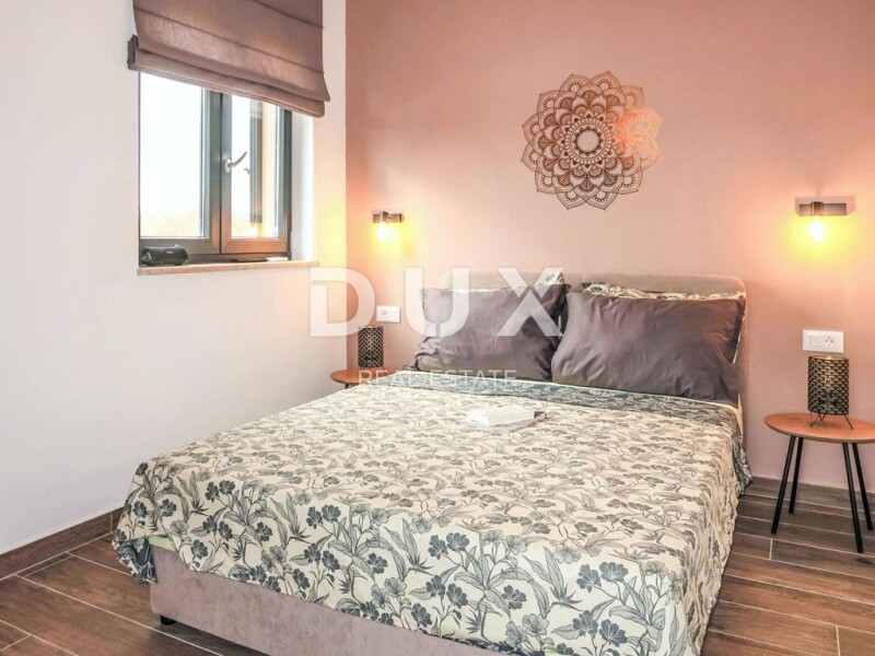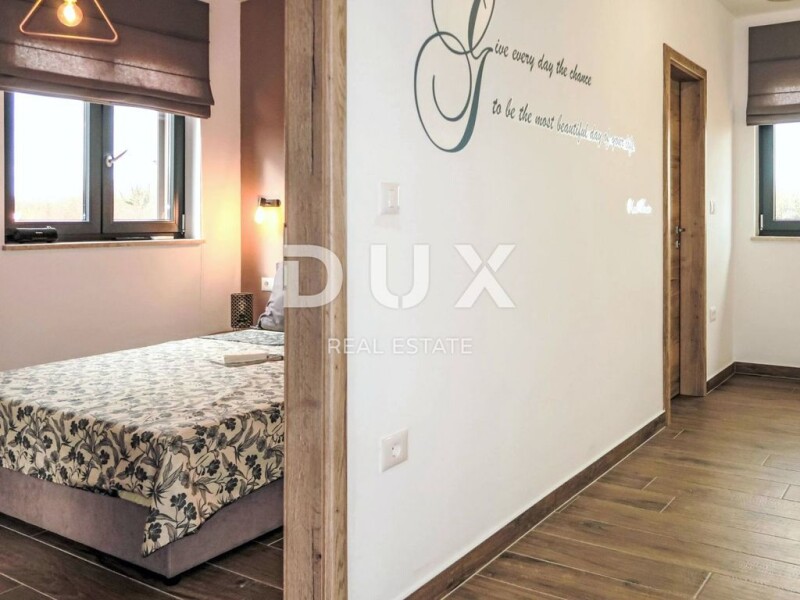 ISTRIA, LABIN - House with swimming pool On the southeastern coast of Istria, where green hills meet the sea, where nature and heritage meet, there are two small towns with different but mutually complementary characters - Labin and Rabac. The picturesque town of Labin rises on a hill 320 meters high, only five kilometers from the white pebble beaches in Rabac. Intertwined with rich history and mining that marked this region, Labin, which was declared an independent republic for a short time, is today a fascinating city of contradictions; old and new, history and present, tourism and art. A house with a swimming pool is for sale near the town of Labin. It is located in a gentle settlement, surrounded by nature, family houses and holiday homes, offering a perfect balance of rural surroundings and proximity to urban facilities. In addition to the location that provides complete comfort and peace, the property is also distinguished by the quality of construction, which guarantees long-term satisfaction and quality of housing. The newly built house is designed as one residential unit that extends over two floors with an airy interior bathed in natural light that exudes elegance. The ground floor consists of an open concept space that unites the living room, dining room and kitchen with access to a covered terrace. The floor plan of the ground floor is complemented by a bedroom, a study, a bathroom and a room for equipment/storage. The first floor consists of three bedrooms, two bathrooms and a terrace covered with a pergola. The spacious garden is landscaped and horticulturally decorated, and complete harmony is provided by the swimming pool of 36 m² with a sundeck, next to which is an elegantly integrated lounge area with an open fireplace. The excellent location and the spatial organization of the interior and exterior of this property provide an opportunity for a comfortable family life or an investment investment in a tourist rental business. Dear clients, the agency commission is charged in accordance with the General Business Conditions: www.dux-nekretnine.hr/opci-uvjeti-poslovanja Iva Zajc Agent s licencom E- www.dux-istra.com Tina Širol Agent s licencom E- www.dux-istra.com ISTRIA, LABIN - House with a swimming pool and a beautiful lounge.