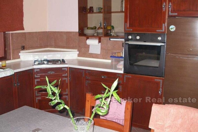 The detached house is located on the island of Ciovo. It was built on a plot of 450 m2, the usable net area of the house is 150 m2. It consists of the ground floor of this first floor. On the ground floor there are two garages. On the first floor there is a three bedroom comfortable apartment with a living space of 114 m2. It consists of entrance hall, hallway, kitchen with dining room, living room, bathroom, three bedrooms, toilet and three balconies. There is the option to upgrade.