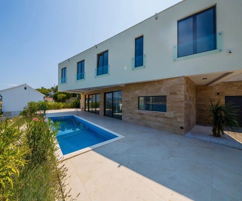 Location: Ciovo Built: 2021 City center: 5 km Airport: 15 km Indoor space: 326 m2 Plot size: 728 m2 Bedrooms: 4 Bathrooms: 5 Terrace Swimming pool Air-conditioner Parking: 4 Pantry.