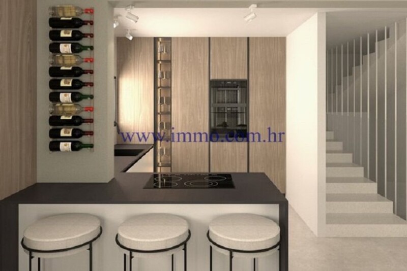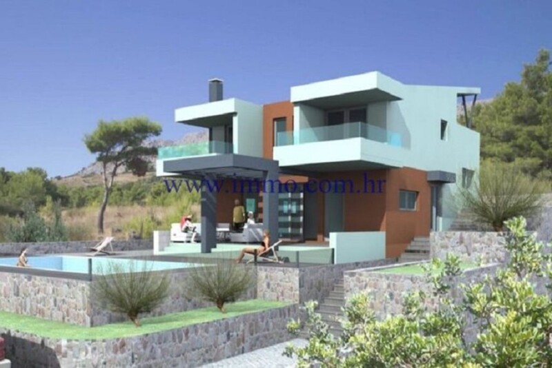 We mediate in sale of luxurious villa under construction, situated close to Split. It's located on a gentle slope, which means that it is in the perfect position to have views of the sea, islands and sunset from almost every corner. End of building process is planned for July of 2023. Villa has three floors connected by inner stairs. Basement is designed as a combination of areas for relaxation and entertainment. It will include sauna, storage, a bathroom, entertainment room with billiard table and a bar, as well as additional room which can be arranged as bedroom or office. On the ground floor there is an ultra-modern kitchen, spacious living room, comfortable bedroom with a great view and an en suite bathroom. This floor also includes technical room and guest toilet. The living room opens onto a sunny outdoor terrace with swimming pool. It is an ideal place for relaxation and enjoying some fantastic views of the sea, surroundings and the sunset. Internal stairs continue to the last floor. On first floor there are three airy bedrooms, each with its own loggia and bathroom. Every room offers fantastic views of sea and surrounding area through floor-to-ceiling windows. This villa is surrounded by stone wall that provides privacy, while the garden will be planted with olives and ethereal herbs for an additional sense of the Mediterranean lifestyle. Villa also has two uncovered parking spaces. During construction only the highest quality materials are used, while the interior will be decorated with elegant designer furniture, which complements the feeling of luxury. Infrastructure: water, electricity, septic tank. Additional information about the facility, its exact location and sightseeing is possible after signing a brokerage agreement with the agency that is in accordance with the Data Protection Act and the Real Estate Brokerage Act.