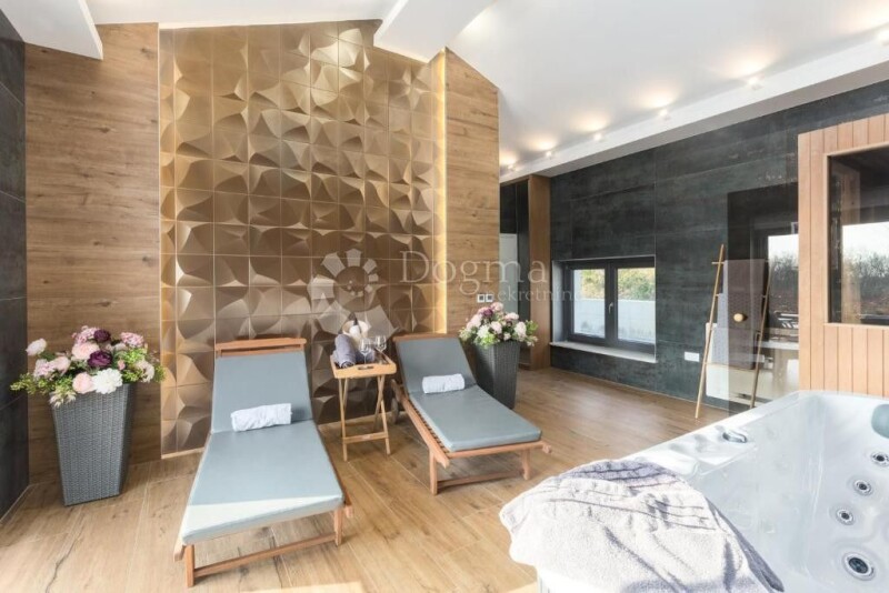 The city of Poreč is located in the heart of the west coast of the Istrian peninsula, offers a rich cultural heritage with centuries of experience in hospitality and an excellent tourist offer. Regardless of whether you are a fan of sea and sun, beautiful green panoramic landscapes, outdoor activities or historical heritage, Istria offers something for everyone! Not far from the center and the first beaches, just a 15-minute drive away, this idyllic village is located as an ideal destination to escape from reality. On the edge of the village there is a beautiful and elegant villa with a swimming pool and a wellness area, with a total living area of 300m2. The ground floor consists of a spacious open space concept kitchen with dining and living rooms with access to a beautiful terrace with a completely open view, a sundeck and a heated saltwater pool of 36m2. Next to the swimming pool in a decently landscaped garden with automatic irrigation and outdoor lighting, there is a 50m2 summer kitchen with storage space and a children's playground. Then, on the ground floor, there is a bedroom with its own bathroom, a guest toilet, a laundry room, a storage room and a wellness area that includes a sauna, a hydromassage tub and a shower. On the first floor of this elegant villa, there are three more bedrooms, two bathrooms and an exit to the terrace with a view of the lush greenery and the sea in the distance. The villa is fully air-conditioned and equipped with underfloor heating. It provides complete comfort and is definitely a property worth attention! The proximity of all the necessary amenities make this location an excellent choice for an idyllic vacation during the summer months if you want to engage in tourist rentals and thus return the invested funds faster. For any additional information and/or viewing, contact with confidence licensed real estate agents with many years of experience in real estate transactions: LORENA KOGEJ Licensed agent Mobile 091/738-7200 Telephone 052/639-276 lorena.kogej@dogma-nekretnine.com SANDRA MILETIĆ Licensed agent Mobile 091/988-5843 Telephone 052/639-276 sandra.miletic@dogma-nekretnine.com.