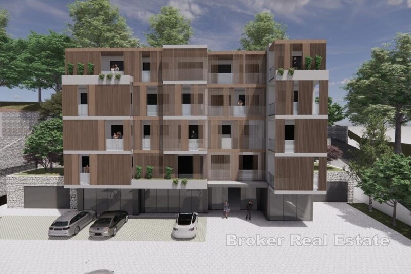 A land total 1,594 m² is for sale, complete with a project and a permit for the construction of a modern residential building with a sea view. The property has four levels and has a total living area of 1,214.69 m². The basement level features a garage providing parking spaces for 22 cars. The ground floor is designated for commercial spaces, while the upper floors house two-bedroom and three-bedroom apartments—12 apartments in total—each with a kitchen, living room, bathroom and a south-oriented balcony. This property is an ideal choice for those seeking tranquility, but close to all necessary amenities makes it perfect for year-round living. What truly sets this property is its breathtaking sea view and stunning pan-orama of the surrounding area. The property is located just 400 meters from the sea.