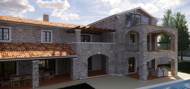 Project of a traditional Istrian stone villa under construction, Porec town outskirts! Only 10 kilometers from Porec in a quiet village began the construction of a stone villa with swimming pool and tennis court on a plot of 1808m2. Total area of the future villa is 350 sq.m. The ground floor consists of storage, kitchen, dining room, toilet, living room and two covered terraces. The first floor consists of 4 bedrooms with bathrooms and a covered terrace. On the second floor there will be a wellness area consisting of a sauna and a jacuzzi with access to a covered terrace and a bathroom. The villa is perfect for families looking for a vacation, and also offers the possibility of a successful rental. Completion of construction is planned for the summer of 2022. Poreč is located on the west coast of the Istrian peninsula. Due to the Mediterranean climate, natural beauty and preserved cultural heritage, it is an ideal place to stay all year round. The city has 53 surrounding villages where there are modern villas with swimming pools and apartment complexes, while in the center you can find a diverse offer of apartments and flats for sale, from rustic stone real estate to luxury new buildings. Ref: RE-U-25727Overall additional expenses borne by the Buyer of real estate in Croatia are around 7% of property cost in total, which includes: property transfer tax (3% of property value), agency/brokerage commission (3%+VAT on commission), advocate fee (cca 1%), notary fee, court registration fee and official certified translation expenses. Agency/brokerage agreement is signed prior to visiting properties.