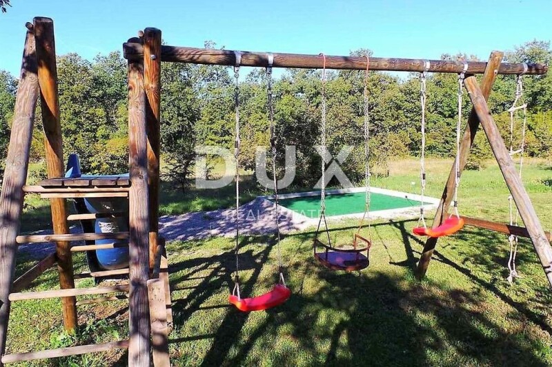ISTRIA, LABIN - House with swimming pool and spacious plot On the southeastern coast of Istria, where green hills meet the sea, where nature and heritage meet, there are two small towns of similar size, but with different but mutually complementary characters - Labin and Rabac. The picturesque town of Labin rises on a hill 320 m high, only five kilometers from the white pebble beaches in Rabac. Intertwined with rich history and mining that marked this region, Labin, which was declared an independent republic for a short time, is today a fascinating city of contradictions; old and new, history and present, tourism and art. In the vicinity of the town of Labin, at the very end of the village, a house with a swimming pool and a spacious plot of land is for sale. The living space of the adapted house extends through the ground floor and first floor. On the ground floor there is a living room, a kitchen with a dining room, a bathroom and a hallway with access to a terrace with an old barn. There is also a tavern with an open fireplace on the ground floor. There are two bedrooms on the first floor. Next to the house there is a garage and in the yard an above-ground swimming pool with a sunbathing area, a covered barbecue and a children's playground. The house can be upgraded, and the rest of the spacious garden consists of a vineyard, orchard, pasture and forest. This secluded property surrounded by nature is an ideal opportunity for family life or as an investment for rental for tourist purposes. Dear clients, the agency commission is charged in accordance with the General Terms and Conditions. Iva Zajc Agent s licencom E- www.dux-istra.com ISTRIA, LABIN - House with a swimming pool and a spacious plot.