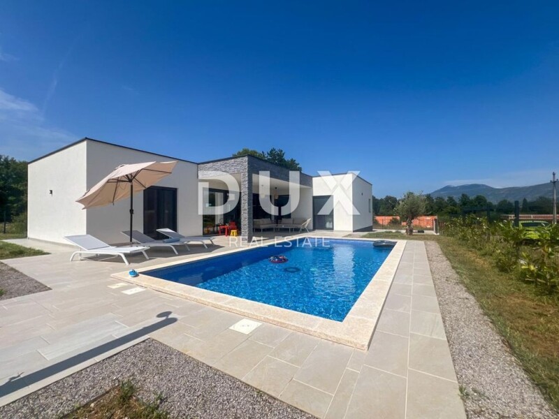 ISTRIA, LABIN (surroundings) - Modern new building with swimming pool On the southeastern coast of Istria, where the green hills meet the sea, where nature and heritage come together, there are two small towns of similar size but with different but mutually complementary characters - Labin and Rabac . The picturesque town of Labin rises on a hill 320 meters high, only five kilometers from the white pebble beaches in Rabac. Intertwined with rich history and mining that marked this region, Labin, which was declared an independent republic for a short time, is today a fascinating city of contradictions; old and new, history and present, tourism and art. For sale is a modern new building with a residential area of 138 m2 with two terraces, one of which is covered with an area of 19 m2. The villa is located on a spacious plot of 970 m2. It contains three spacious bedrooms, each with its own modern bathroom, providing maximum comfort and privacy. An additional guest toilet is located at the entrance. The central part of the house consists of an open space kitchen, which is connected to a spacious and bright living room. This space is perfect for family gatherings and entertainment, thanks to the large glass surfaces that provide plenty of natural light and a beautiful view of the garden. The outdoor space is completely fenced, where there is a swimming pool of 32 m2. This house is built from the highest quality materials, with special emphasis on energy efficiency and durability. All bathrooms and the living room are equipped with underfloor heating, which provides additional comfort during the colder months, but also with air conditioners, which provides an optimal temperature throughout the year. This exceptional property offers everything you need for a luxurious and comfortable life. Dear clients, the agency commission is charged in accordance with the General Business Conditions: www.dux-nekretnine.hr/opci-uvjeti-poslovanja Stefani Kapel Agent s licencom E- www.dux-istra.com ISTRIA, LABIN (surroundings) - Modern new building with swimming pool.