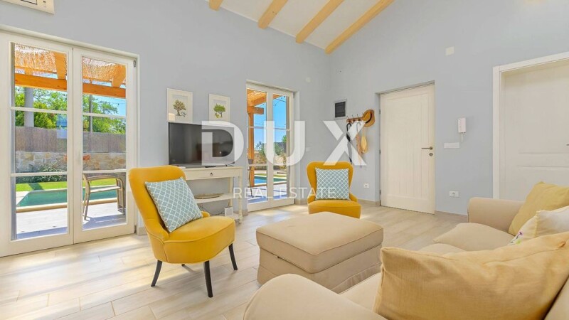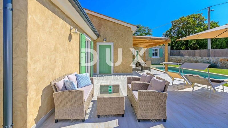 ISTRIA, ROVINJ - House with a swimming pool The most attractive and picturesque Istrian town of Rovinj, with its old town centre under UNESCO protection, is an eternal inspiration for romantics and artists and one of the most developed tourist destinations in Croatia. It is located on the western coast of Istria and is adorned with a very indented archipelago with as many as 14 islets and 6 cliffs along 67 kilometers of coastline that is a protected natural heritage. The beautiful indented coastline, specific mild Mediterranean microclimate, excellent gastronomic offer, year-round cultural events and friendly and kind hosts make this place magical. In the vicinity of the town of Rovinj, a house with a swimming pool is for sale. The microlocation offers an authentic experience of a small Istrian town, intimacy, relief from every hectic effort and a break from noise, and at the same time is close enough to the dynamic towns of Istria with a range of facilities. In addition to a convenient location, the property is also characterized by the quality of construction, which guarantees long-term satisfaction and quality of living. The house of timeless design and charm blends into the settlement and landscape in terms of form and color, and is conceived as a tastefully decorated and well-equipped residential unit of 90 m². It consists of an open-concept space that unites the kitchen, dining room and living room with access to a pergola-covered terrace, two bedrooms and two bathrooms. Next to the house there is an auxiliary building of 15 m² consisting of a bedroom and a bathroom. The yard is horticulturally decorated and fenced, and the perfect harmony is complemented by a 24 m² swimming pool with a sunbathing area. The excellent location and spatial organization of the interior and exterior of this property provide an opportunity for a comfortable family life or investment in a tourist rental business. Dear clients, the agency commission is charged in accordance with the General Terms and Conditions: www.dux-nekretnine.hr/opci-uvjeti-poslovanja Iva Zajc Agent s licencom E- www.dux-istra.com ISTRIA, ROVINJ - House with swimming pool.