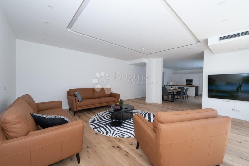 For sale is a luxury villa in Trogir, one of the most beautiful Mediterranean cities, ideal for people looking for high standards and comfort in a peaceful environment. This imposing villa, located on a plot of 510 m2, offers a view of the sea and stands out for its modern design and high-quality materials. The villa covers a total area of 340 m2, spread over three floors. In the basement there is a spacious garage for two cars, equipped with a sauna, a jacuzzi, a social area and a separate toilet. This is the perfect space for relaxation and fun. The ground floor of the villa consists of an elegant hallway, a modern kitchen with a dining room and a spacious living room. The large outdoor terrace with pool provides the perfect place to relax with a refreshing view of the surrounding landscape. This is an ideal space for gathering with family and friends. On the first floor there are four spacious bedrooms, each equipped with modern facilities. Two luxurious bathrooms provide comfort and privacy for every part of the house. The entire villa has underfloor heating and ducted ceiling air conditioners, which ensures a pleasant temperature throughout the year. The villa is completely finished, with high-quality materials installed, including high-quality ceramics, PVC joinery, mosquito nets, heating and cooling systems, and brand new furniture. Everything you need for a comfortable life is already there. The location of the villa offers peace and quiet, far enough away from the hustle and bustle of the city, but at the same time close to all the necessary amenities (shops, restaurants, post office, bank, etc.) which are only a few hundred meters away. Ownership and all documentation are in order, and the villa is ready for immediate occupancy. Contact us now to book your viewing appointment and experience this unique experience of luxury living in Trogir. DORA RADUJKO dora.radujko@dogma-nekretnine.com 00 385 91 956 5822.