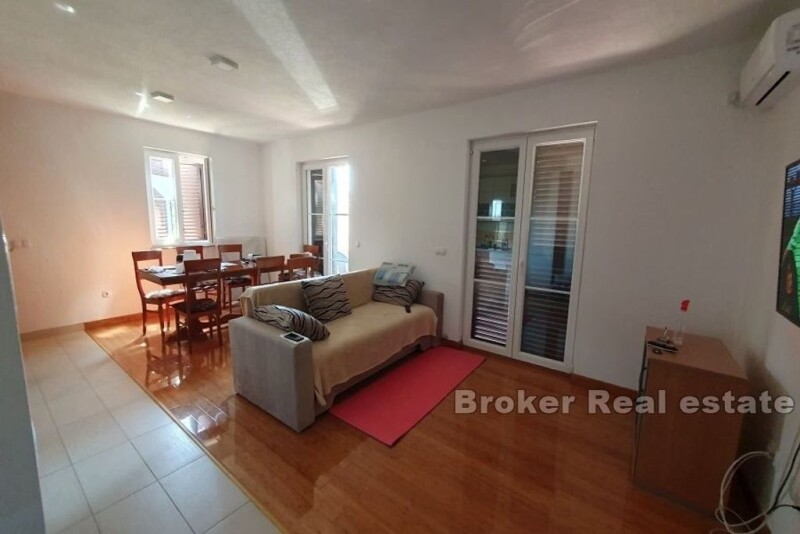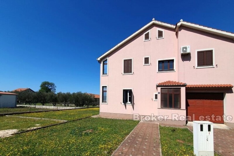 An attractive semi-detached house located in an exceptional position, not far from the sea, beaches and the town center and at the same time in a peaceful environment, idyllic for family living. Built in 2008 on a plot of 464 m2, it extends over two floors and an attic. The ground floor consists of a garage for one car, a hallway, a storage room, a guest toilet, a bathroom, a bedroom, a kitchen with a dining room and a living room with access to a 20 m2 loggia. Internal stairs lead to the first floor, which consists of two furnished studio apartments and two bedrooms with bathrooms. The attic with an uncovered terrace with a partial view of the sea is unfinished and serves as an additional storage room. Quality materials and equipment were used during construction. The exterior carpentry is PVC, while the shutters are made of aluminum, the floors are covered with ceramic tiles and bamboo parquet, which brings a touch of the Far East into the space. The facility was occasionally used as a vacation home. The entire furniture has been completely preserved. Air conditioners are used for heating and cooling, and preparations for central heating have also been installed. The house is located 10 minutes from the center of town and the beach, while Zadar Airport is 10 minutes away 10 km away and the city of Zadar 12 km away. The property's location is the perfect starting point for visiting Croatia's many natural beauties, including UNESCO-protected sites, national parks and more. In addition to living in a peaceful environment and enjoying the mild Mediterranean climate, the property offers the possibility of tourist rental as an entire building or individual apartment units.