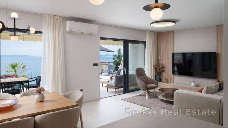 Within an exceptional complex of newly built villas in a settlement near the city of Split, we offer for sale a villa with a swimming pool with a total living area of 320m2, and is located on a plot of land of 600m2 with a cultivated garden with automatic irrigation and parking for several cars. The villa extends over three floors and has several loggias and terraces from which there is an enchanting view of the sea and the islands. In the basement there is an area for entertainment, i.e. billiards, a wellness room, an additional bathroom for extra comfort, an engine room and a garage. An internal staircase leads to the ground floor, which consists of an open space that unites the kitchen, living room and dining room, two bedrooms, one of which has its own bathroom, and an additional bathroom. Going out to a beautiful terrace with an overflowing pool and a beautiful view of the sea and nearby islands. On the first floor, there is a spacious entrance hall, two additional bedrooms with their own bathrooms, and a roof terrace with outdoor furniture for sitting and socializing, as well as a jacuzzi. The view from this floor does not need to be commented too much, all that needs to be said is that it leaves you breathless. The distance from the sea is 300 meters, as are the nearby beaches, while the city of Split is located at a distance of approx. 12 km.