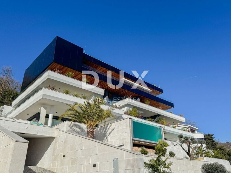 OPATIJA, CENTER - 217m2 of luxury with its own pool in a new building above the center of Opatija, view, garage From the Dux offer, we highlight a special new building with 8 luxury apartments near the center of Opatija of top quality. This rare and powerful building in the construction phase of 2023-2024 is located only 250 meters as the crow flies from the sea and the Lungomare. The building is located in a quiet side street and offers a panoramic view of the sea. With its easy access to the city center, this home offers an excellent balance between elegant suburban living and the rich array of amenities that the city of Opatija has to offer. Exclusive apartment A5 on the second floor with a total net size of 217.06 m2 (GROSS 315m2) consists of hallway, kitchen + living room + dining room 59m2, 3 bedrooms, 3 bathrooms, study, south balcony 63m2 and terrace 59m2 with private pool 22m2 + garden (lawn). From every corner of the apartment there is a panoramic view of the sea and the center of Opatija. The project is being built on a plot of 1700 m2 and includes a large underground garage, from which the apartment has 3 garage spaces and a large storage room. • heating/cooling underfloor heating + heat pump • exceptional construction class, Italian ceramics, branded sanitary ware • Own storage room • Large underground garage • Elevator • Video surveillance and alarm • Panoramic sea view Future Mediterranean horticulture will delight you, while enjoying the silence of a peaceful environment . Perfect investment or opportunity for people looking for 4 walls on the sea CLOSE TO OPATY. Walking to the sea takes 7 minutes, or 500 meters on a slightly downhill path. The great advantage of this location is silence, privacy, a view of the sea, the greenery of Učka and the proximity of Opatija. IN THE VAT SYSTEM - the property is owned by the company - the possibility of submitting a request for a VAT refund The price includes 3 garage parking spaces, internal storage. Move-in will be 12/23 UNIQUE OPPORTUNITY FOR NEW BUILDING ON THE OPATIJA RIVIERA! Dear clients, the agency commission is charged in accordance with the General Business Conditions www.dux-nekretnine.hr/opci-uvjeti-poslovanja Marko Šutanovac Agent s licencom E- www.dux-opatija.com OPATIJA, CENTER - 217m2 of luxury with its own pool in a new building above the center of Opatija, view, garage.