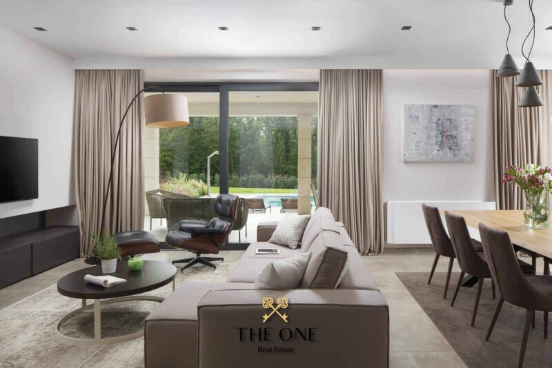 Lovely villa with a pool is located in a peaceful rural environment on the outskirts of the historic town of Višnjan. A wonderful location on a hill offers an incredible experience of living in Istria. The spacious open living room is contemporary and abundant with natural light, while the dining room and modern kitchen create the perfect ambiance for family meals. The terrace door leads to a covered terrace by the pool, where you can enjoy meals under the Istrian sky. The enchanting villa has four comfortable bedrooms, each with its own bathroom, providing complete privacy and comfort. Two rooms are located on the ground floor, while the remaining two are on the 1st floor and have a beautiful terrace with a view of the beautiful surroundings. The villa also offers a variety of entertainment activities, including table tennis, bicycles, badminton courts, indoor football and a children’s playground. For relaxation there is a wellness room. The villa’s grounds are fenced and cultivated, and there are multiple outdoor parking spaces with an EV charging station. The location of this villa is special, with a view of the sea and closeness to the historic town of Višnjan with its observatory and excellent traditional gastronomy. Only 15 km from the city of Poreč, which offers beautiful beaches, rich tourist infrastructure, restaurants and nightlife, this villa is the perfect place for everyday life in Istria. Not what you are looking for? Contact us for a personalized approach and a discreet tailor-made property finding service. THE ONE E- www.theone.hr THE ONE Real Estate E- www.theone.hr Lovely villa with a pool.