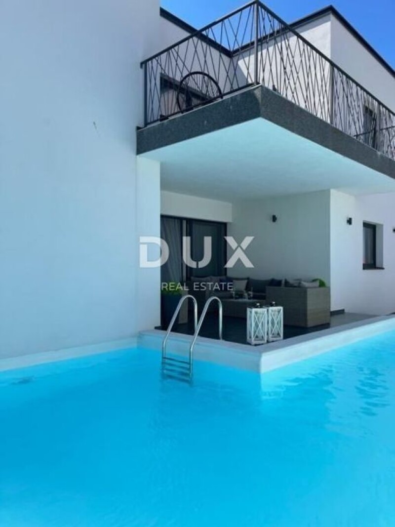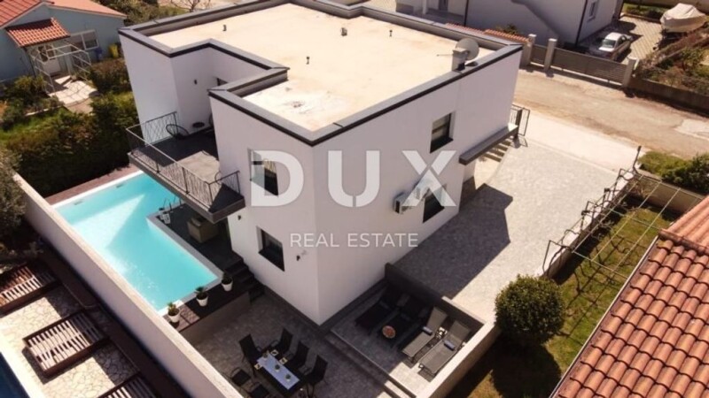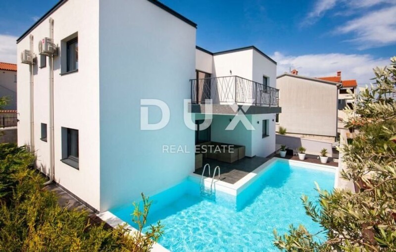 ISTRIA, PULA, ŠTINJAN- Modern villa with pool and sea view Pula is the largest city in Istria located in the southwestern area of the impressive landscape of the Istrian peninsula and is characterized by interesting cultural and historical heritage, beautiful nature and long breathtaking beaches. The city developed partly below and partly on seven hills. The moderately warm climate of mild winters and warm summers prevails, so it is an ideal place for potential property owners who will be able to enjoy them all year round. In a small village near Pula, Stinjan, only 600 m from the sea, is located this modern detached villa of 255 m2 on a plot of 402 m2 and a swimming pool of 30 m2. It consists of ground and first floor. The ground floor has a kitchen with dining area, a spacious living room with access to the terrace with pool and outdoor grill and 2 bedrooms with bathrooms (walk in shower). On the first floor there are 3 bedrooms, a children's room, 2 bathrooms and a living room with access to the terrace overlooking the sea. Close to the sea and all necessary facilities, proper documents, 4 parking spaces. The property is equipped with modern and elegant furniture, satellite TV, video surveillance and is sold fully furnished. This property is ideal for investors in tourism, as it is categorized for the purpose of tourist rental. Dear clients, the agency commission is charged in accordance with the General Terms and Conditions: www.dux-nekretnine.hr/opci-uvjeti-poslovanja DUX Nekretnine E- www.dux-nekretnine.hr ISTRIA, PULA, ŠTINJAN- Modern villa with pool and sea view.